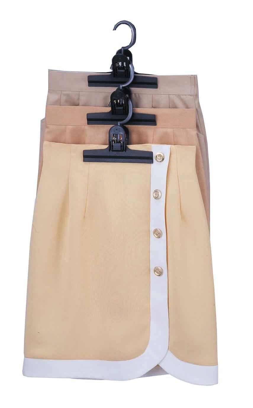 ■ボトムの収納に 連結できるクリップハンガー。 ■重ね吊りで省スペース収納ができるクリップタイプのボトムハンガー。 ■1着分のスペースで3倍の収納力。 ■強力クリップで衣類をがっちりキープ。
