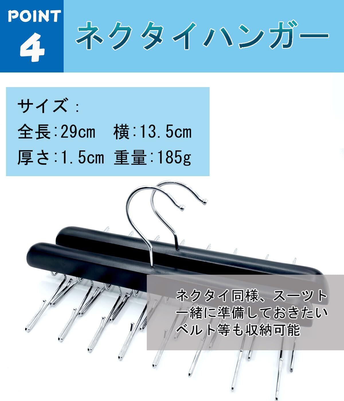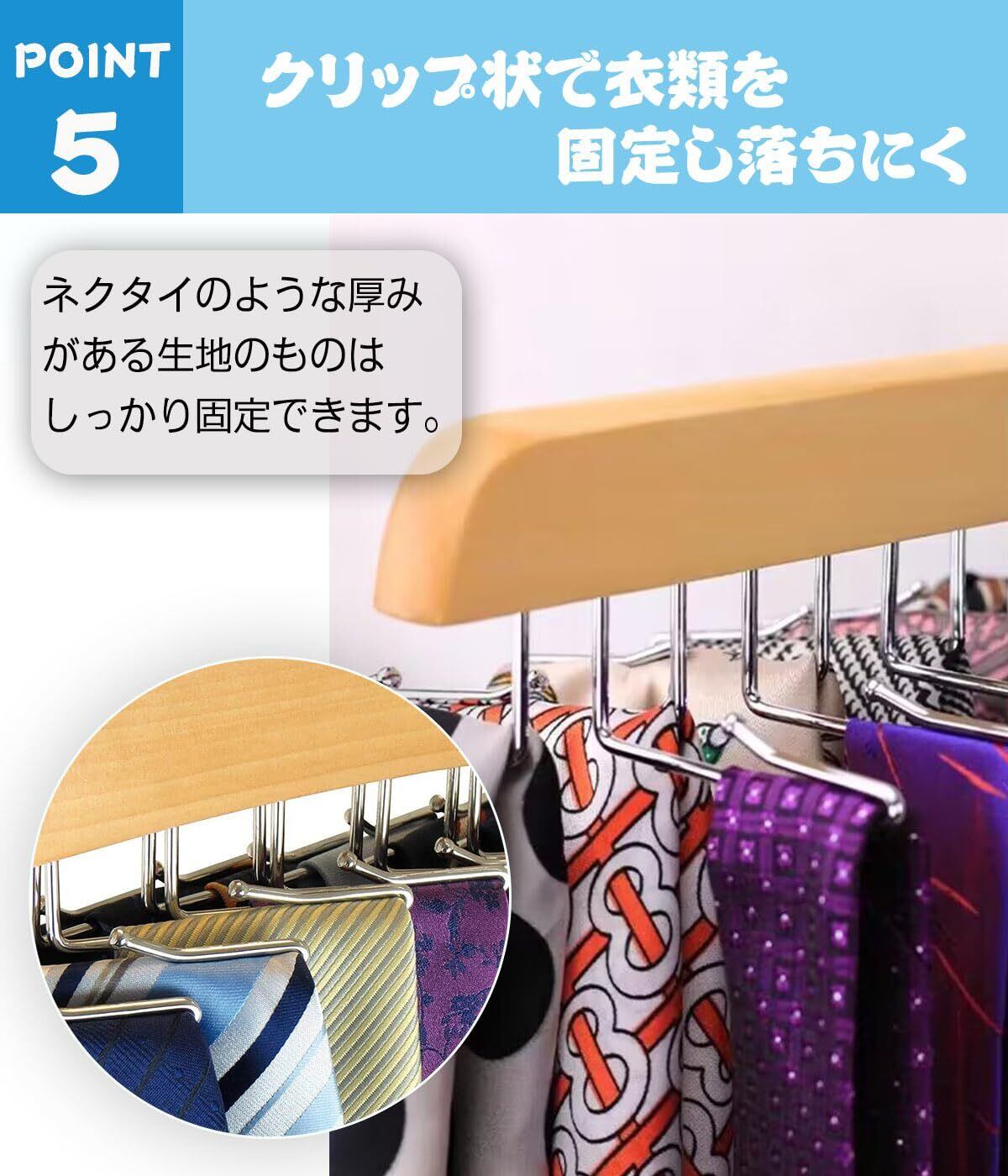 【高級製】滑らかな木材でネクタイの生地が引っかかりにくい、天然木をフレームに使用した高級感のあるアイテム。木材の表面が滑らかで、ネクタイの生地が引っかかりにくいのが特徴です。ネクタイのフックは錆びにくく耐久性に優れたクロム合金を採用しています。
