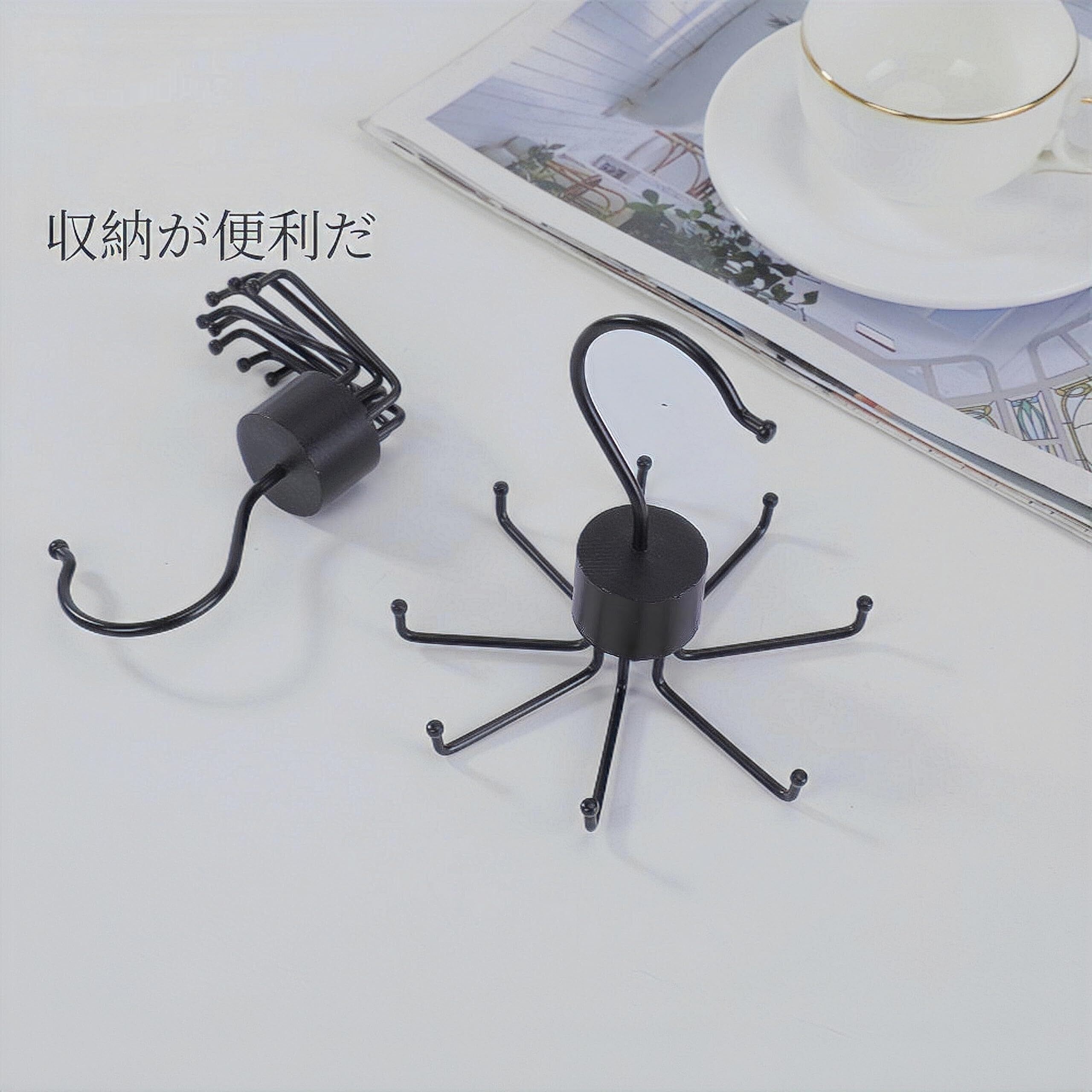 【特価商品】ベルトホルダー フック ネクタイ収納ラック 360度回転大容量多機能8個ベルトネクタイ 収納ラック 携帯折りたたみ収納ラックストレージのベストチョイス コンパクトで 多機能収納フック(黒)
