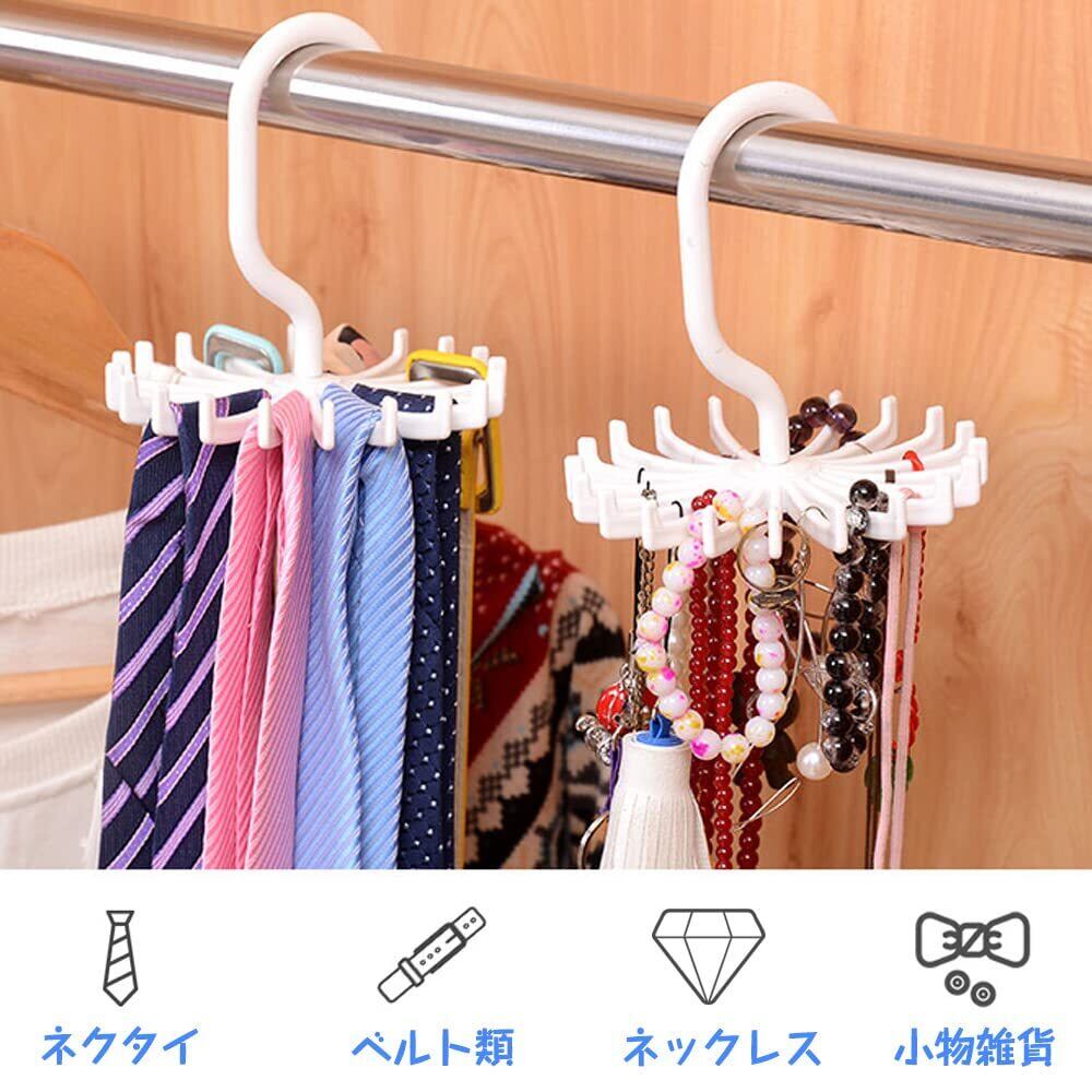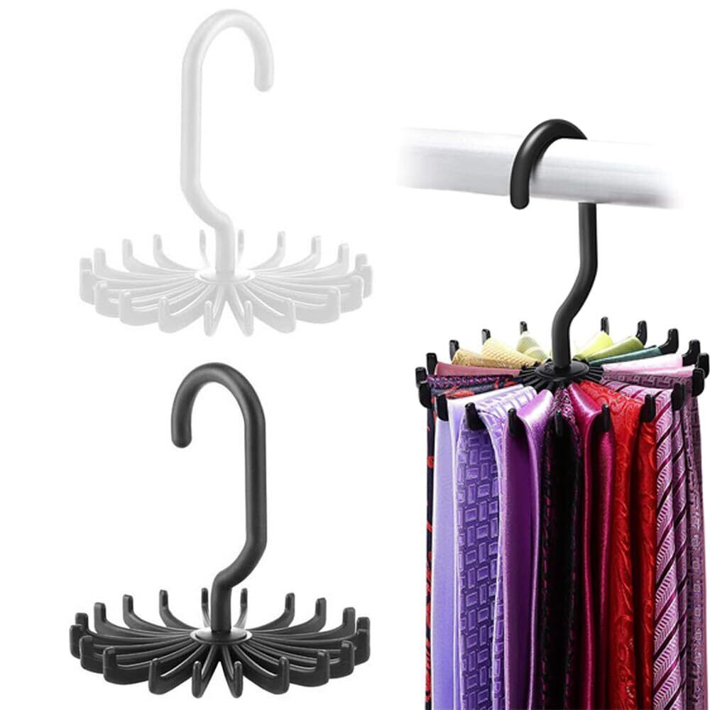 ワードローブオーガナイザー ネクタイ収納ハンガー 円形 360度回転 省スペース収納アイテム 20本のネクタイを収納可能 (1白+1ブラック)