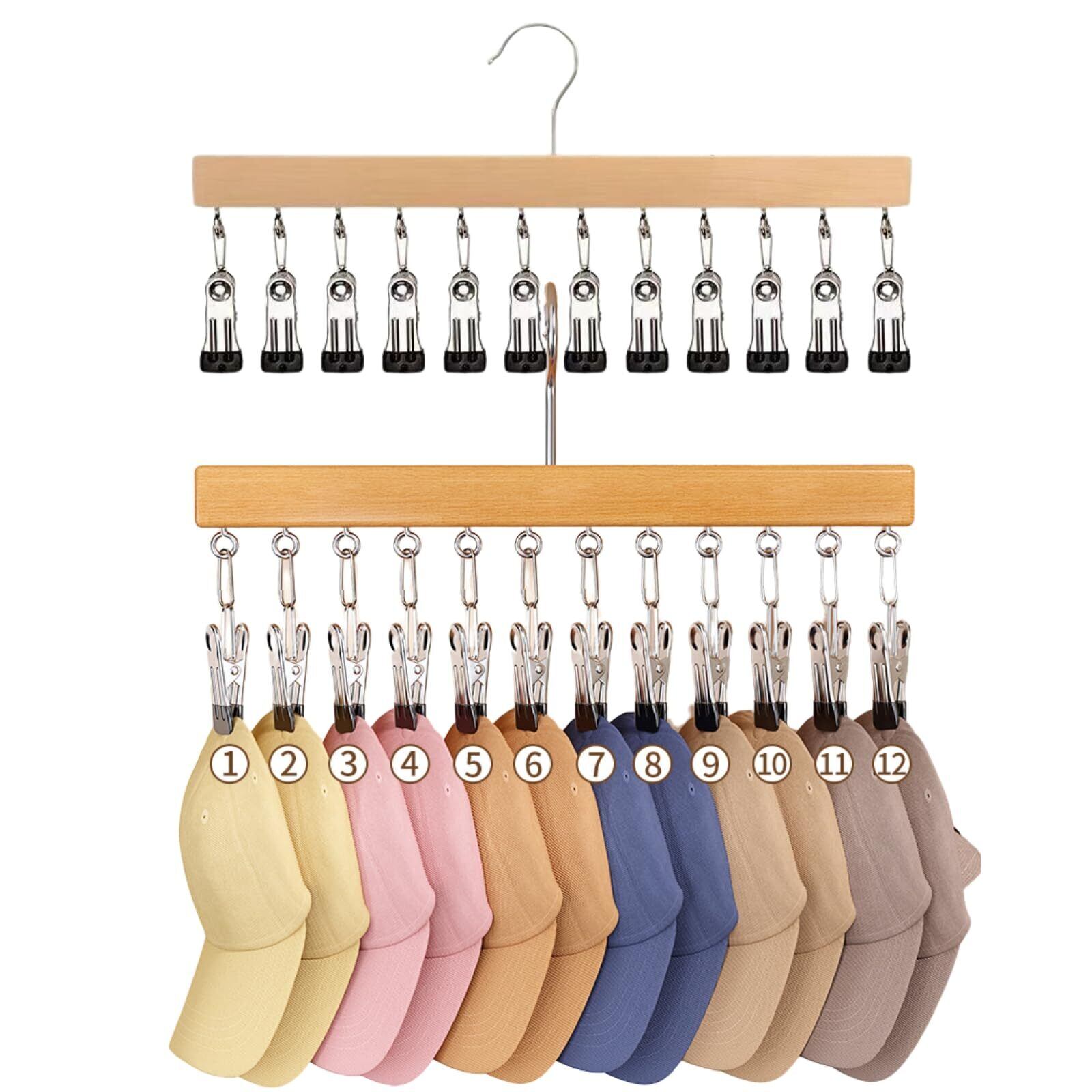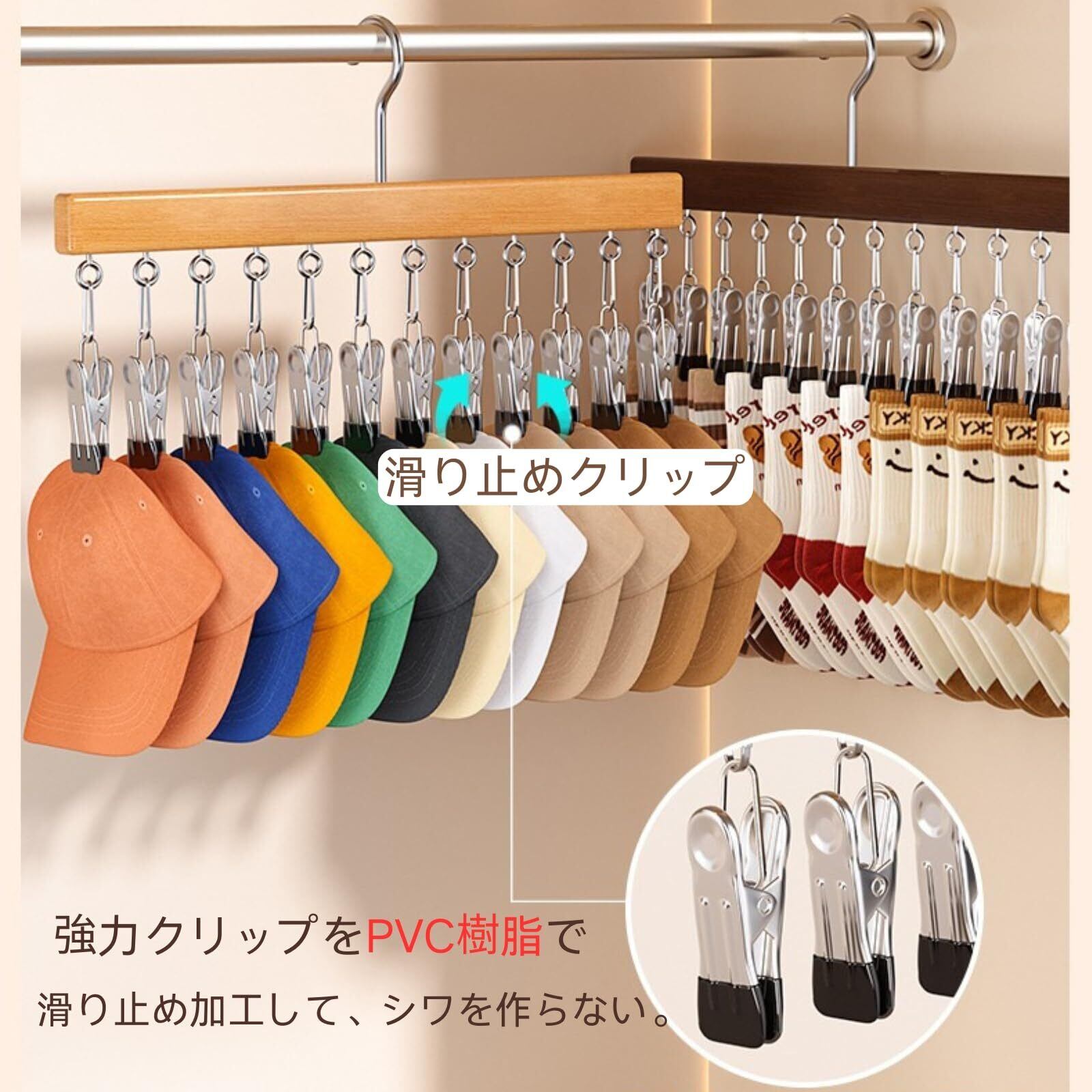帽子掛け 帽子ハンガー 2個セット 12ピンチ ぼうし収納 吊り下げ キャップハンガー 360°回転フック 省スペース 多機能 滑り止めクリップ クローゼット コンパクト 洗濯物干し 収納力アップ ハンガー (A)