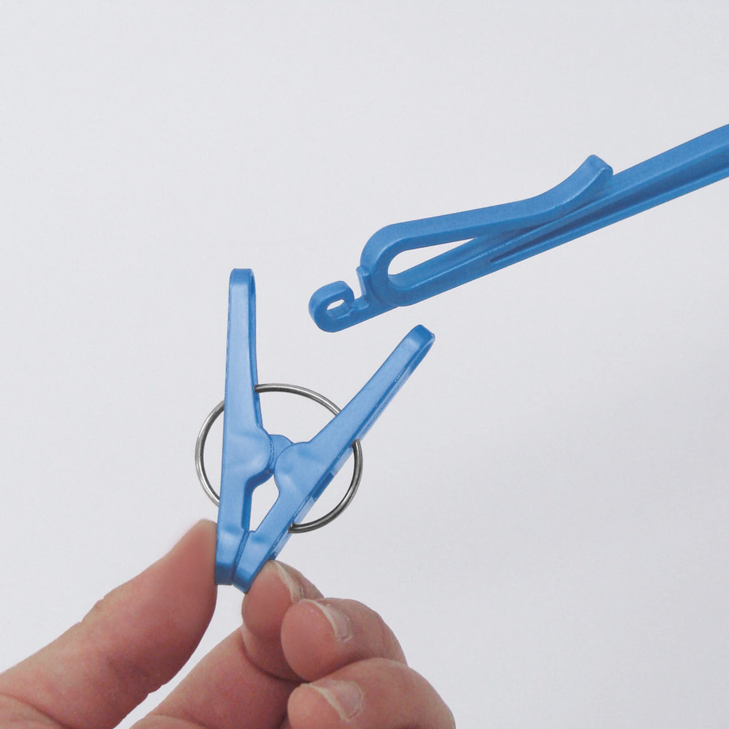 〇アーム先端に洗濯物をとめるクリップとピンチが付いています。 〇ロープに掛けて使用する場合の横すべり防止ストッパー付です。