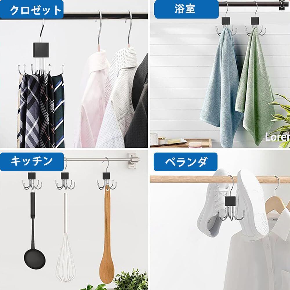 ②【360度回転式】このベルトハンガーは360度回転式フックを6本付きなので、各爪の位置と角度を調整でき、より使いやすくなります。ハンガーを回転するとほしい物をすぐ手に届けます。取り出しや片付けが速くなり、時間とエネルギーを節約できます。とても便利なベルト収納品です。