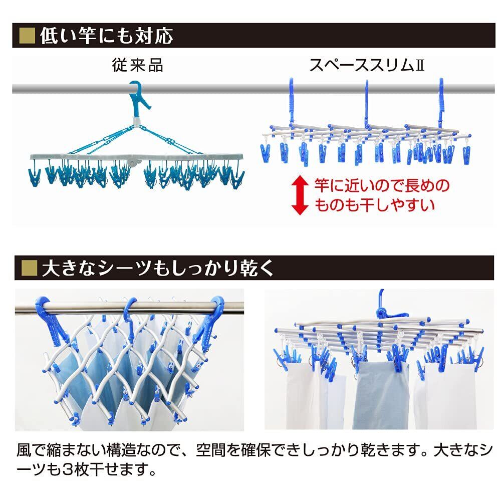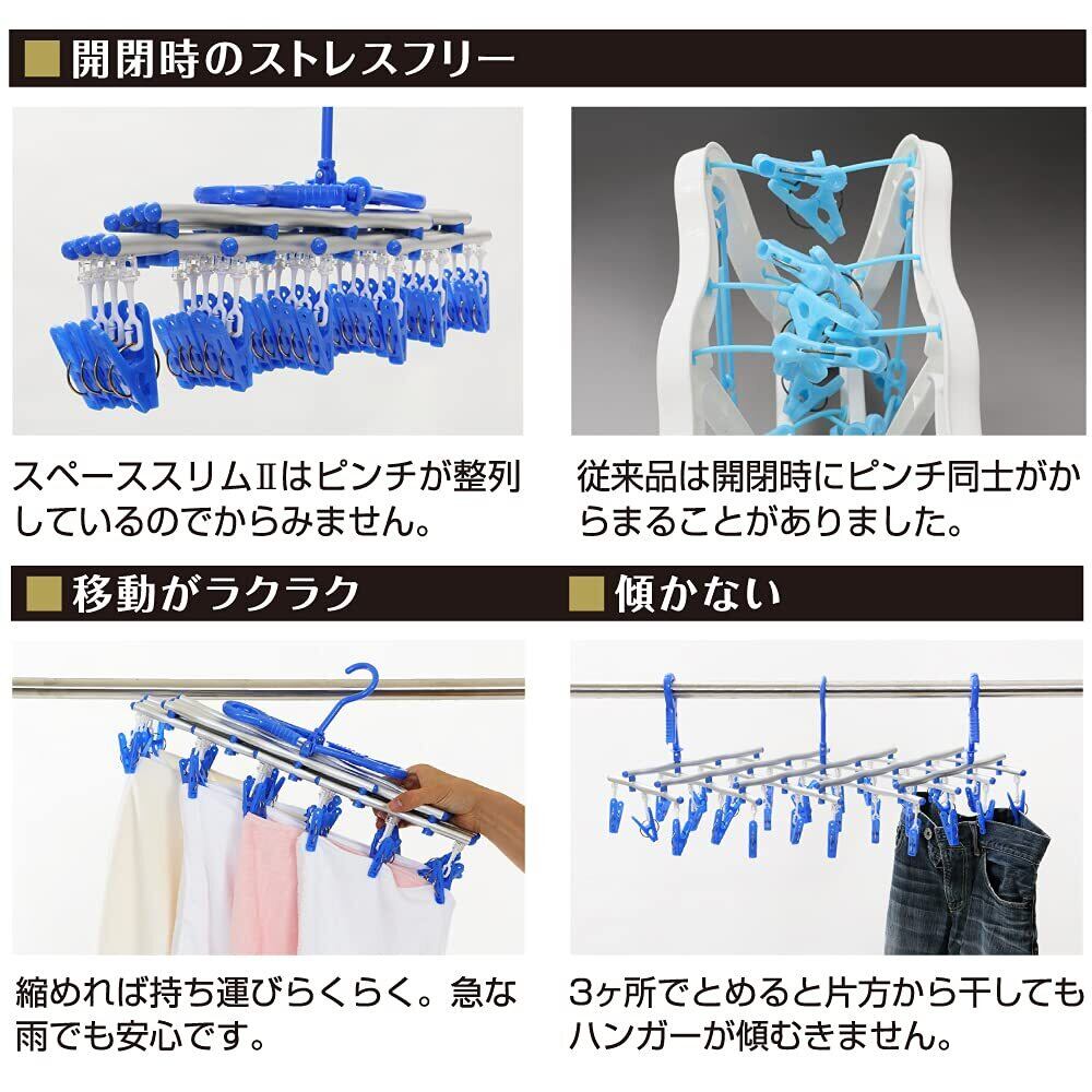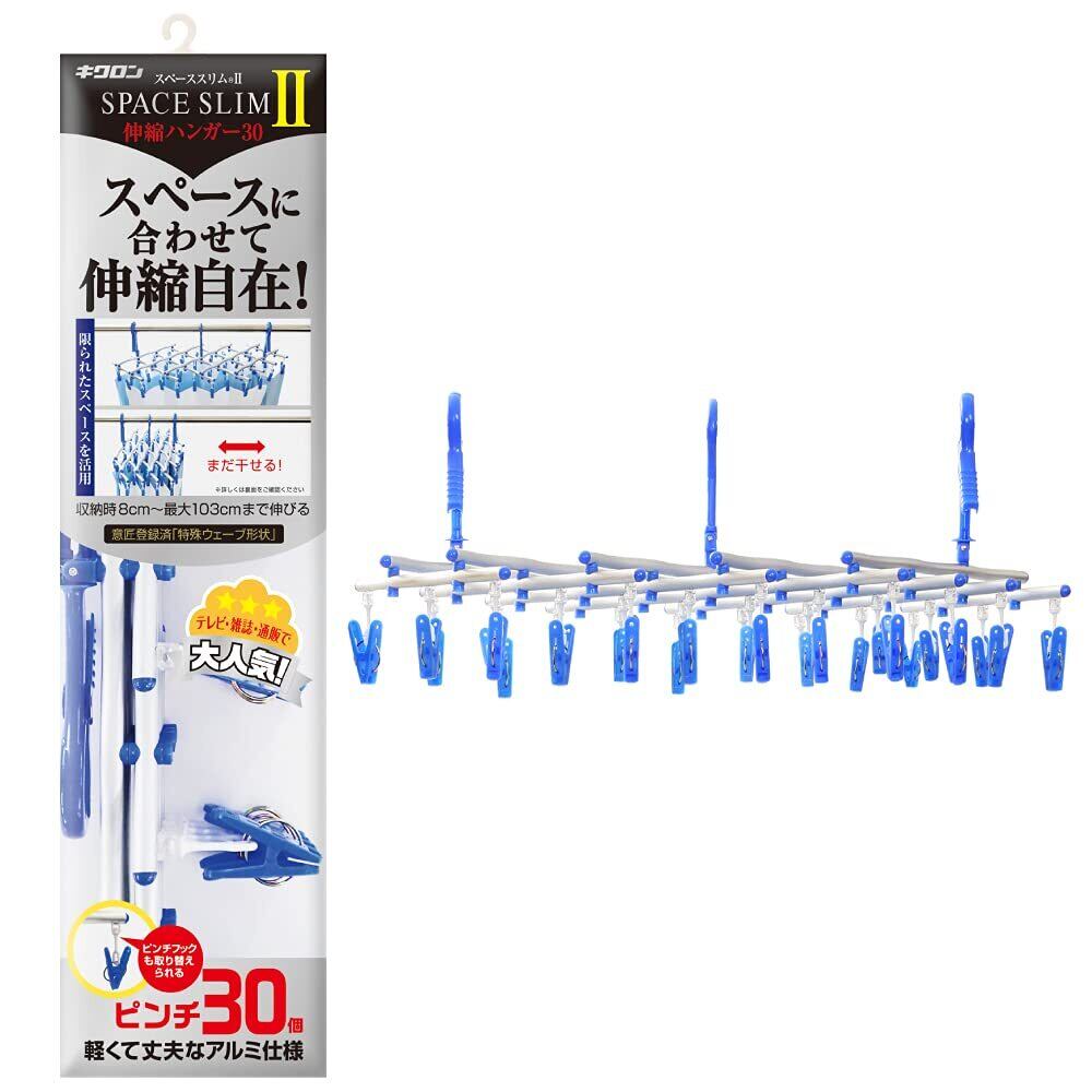 キクロン 洗濯 物干し ハンガー 伸縮ハンガー 30ピンチ ブルー ピンチ取り替え可能 角ハンガー スペーススリムⅡ