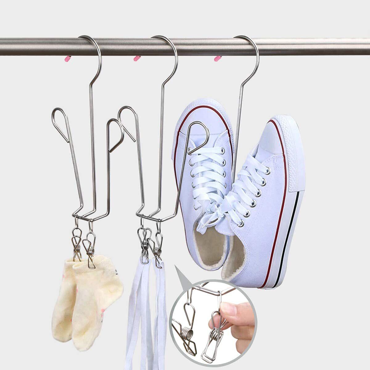 広い適用性:スニーカーや運動靴、スリッパ、ハイヒール、長靴など様々な靴対応、シューズ以外に、スカーフ、バッグ、帽子、ベルト、なども小もの掛けます。靴ハンガー洗濯時だけでなく、普段のストック用置きとしても使用して、置き場所に困るバスブーツを掛けるハンガーとしても使えます。