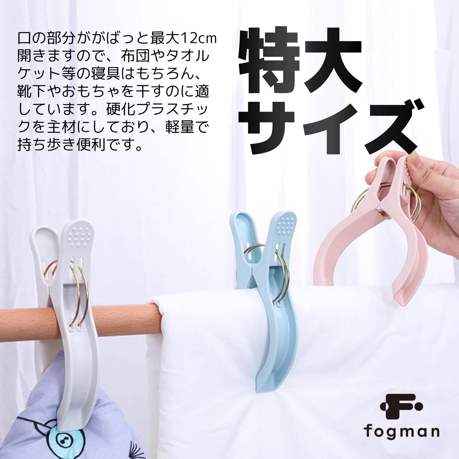 【新春セール】fogman 洗濯ばさみ 大型 強力 特大 洗濯クリップ 布団 幅広 開き幅12cm (グレー, 3個セット)