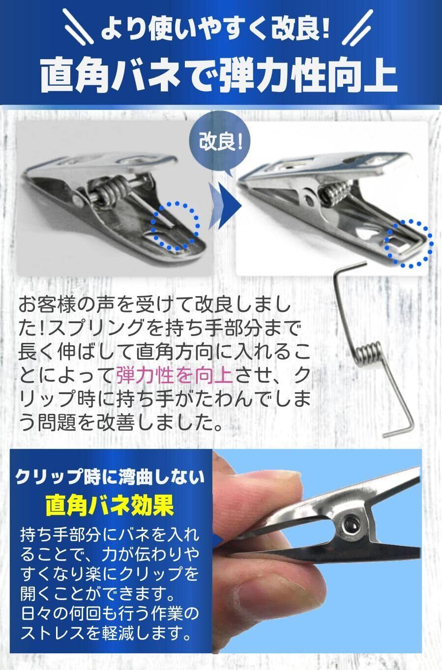 【商品詳細】素材:ステンレス/仕様:直角バネ/サイズ:5 x 1 x 2.2 cm (開口幅:1.9cm)/セット:50個/重量:3.5g/個