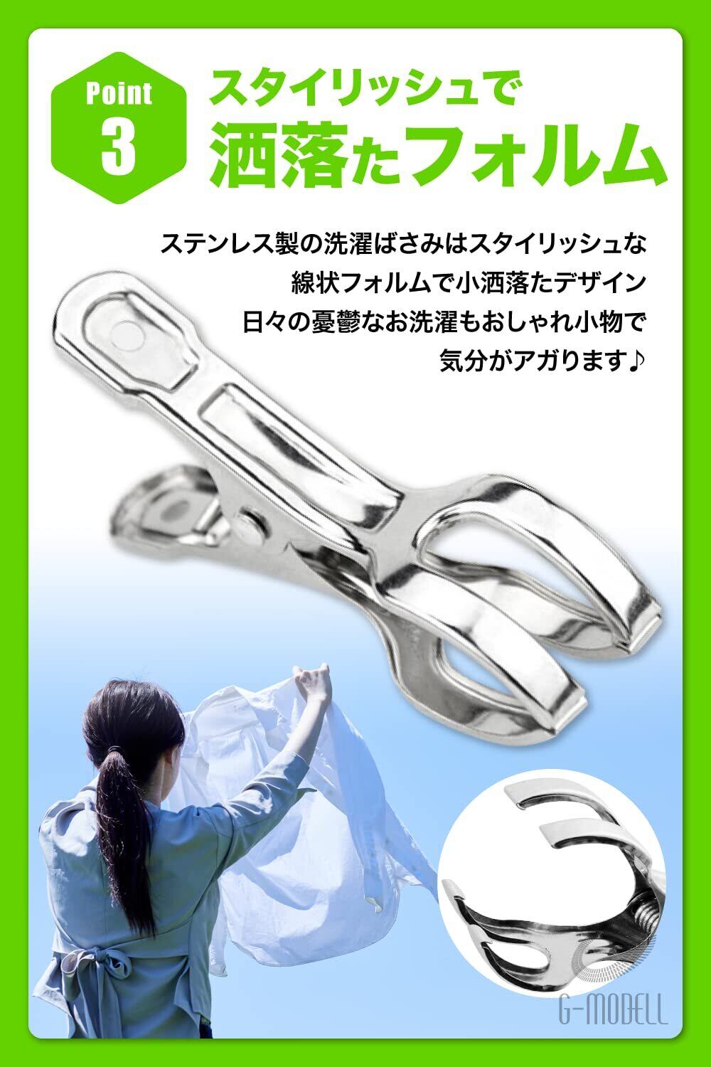 洗濯バサミ せんたくばさみ 洗濯ばさみ ステンレス 強力 防風 (10個入り, 小)