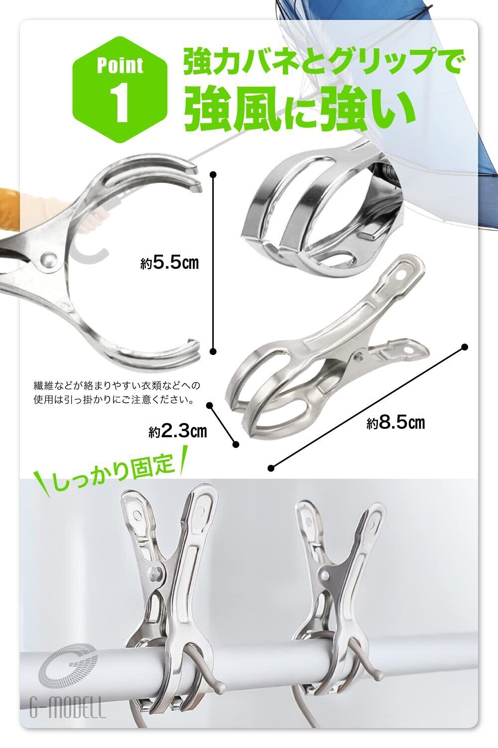 【強力なグリップ力】強力なバネを採用しているのでグリップ力が強く、突然の強風でも洗濯物が飛ばないので安心です。