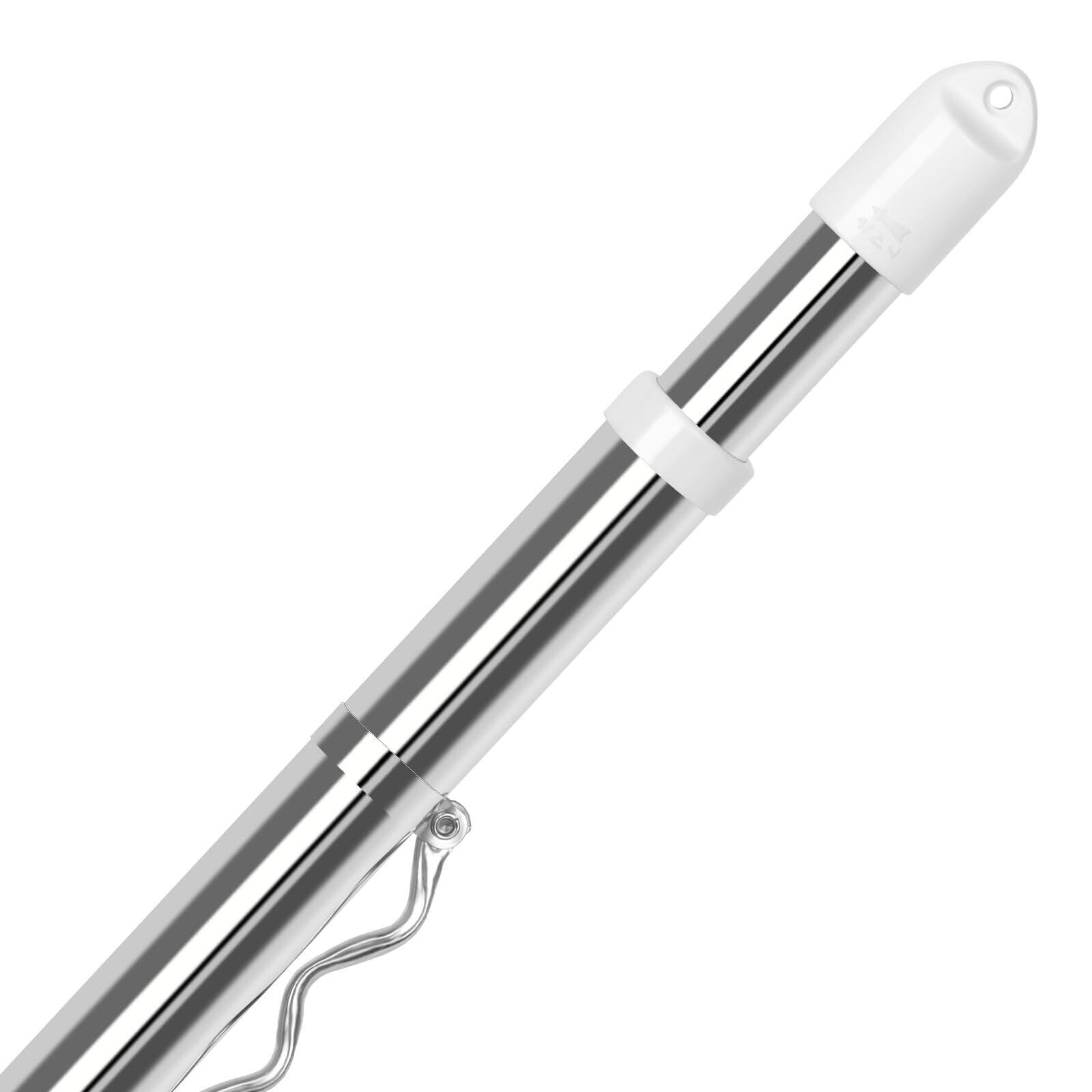 【組立一瞬 すぐ使える】ジョイント部分を回すだけ、取り外しや組み立てが簡単にできます。プラスチック製のジョイントより、一体型ステンレスジョイントは約6cmで脱落しなく、竿全体の強度が高くなります。収納・持ち運びの際は、竿を2本に分けてコンパクトになります。収納時長さわずか1.15m。