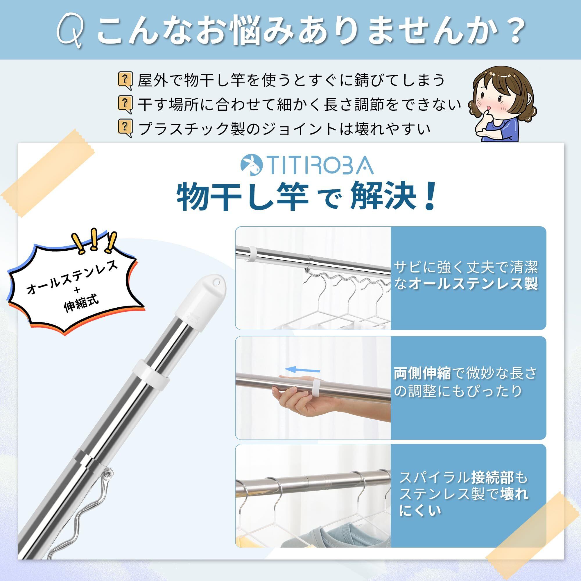 【人気商品】チチロバ(Titiroba) 物干し竿 パイプ太さ29.4mm 洗濯物がたくさん干せる 屋内・屋外使用可 伸縮自在 洗濯竿 洗濯棒 ハンガーかけ竿 2.2m~4m