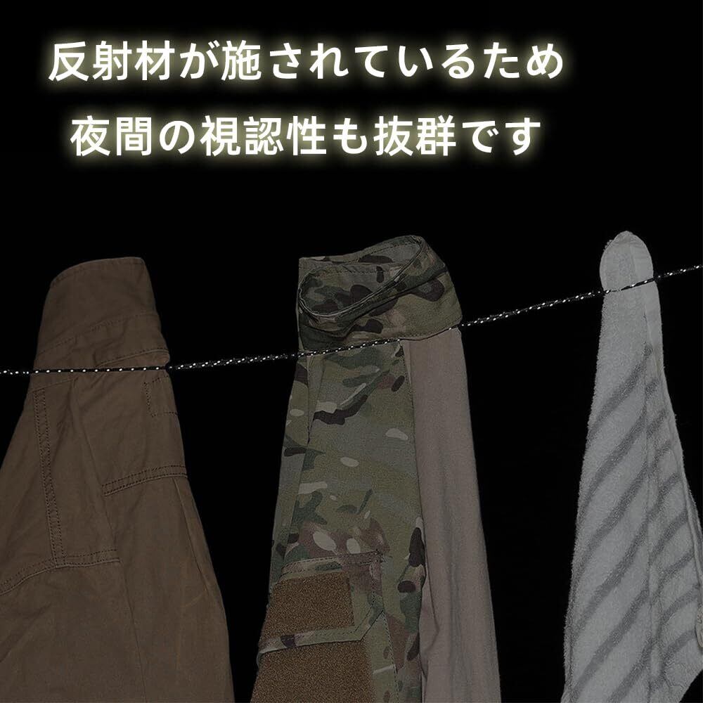 【多機能で幅広い用途】タオルや衣類はもちろん、キャンプ用品やその他のアイテムを干すのにも適しています。旅行先、バルコニー、キャンプ地など、さまざまな場面で活躍するこのロープは、アウトドア愛好者や旅行好きには欠かせないアイテムです。