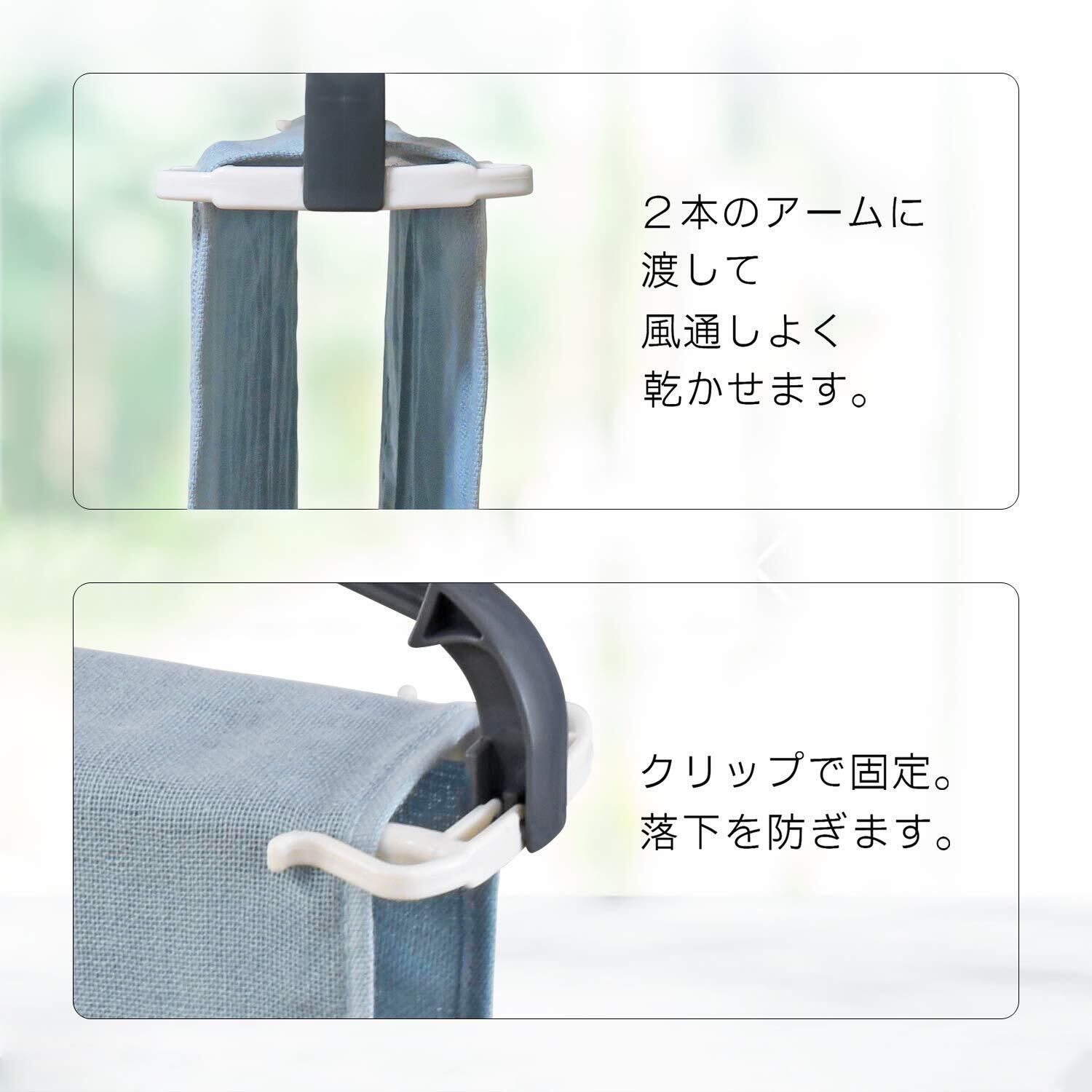 伸縮式で、衣類用の洗濯ハンガーとしても使えます。乾きにくい厚手のパーカーも、身頃の間に空気を通すことが出来るので、通常のハンガーより早く乾かせます。