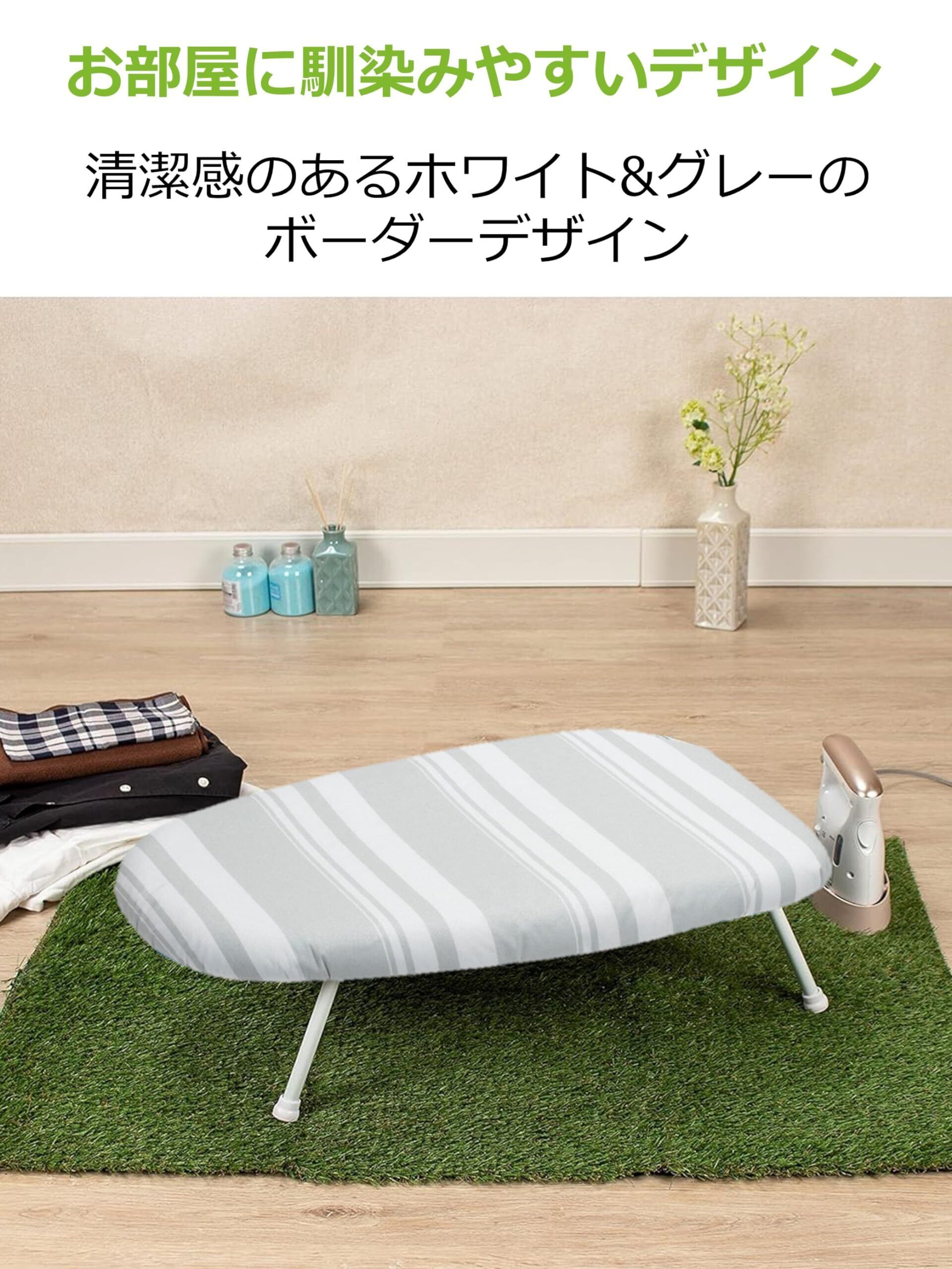ストリックスデザイン アイロン台 ボーダー 約幅36×高さ19.5×奥行60cm フック付 ストッパー付 ホワイト&グレー お部屋に馴染む ホワイトカラー アルミコート SB-113