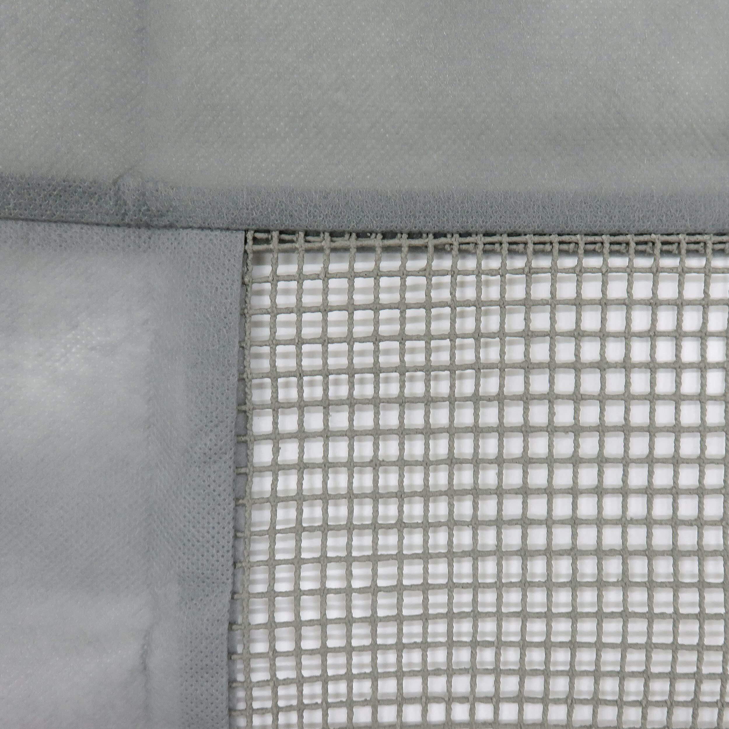 ●すべり止め用ネットでふとんのずり落ちを防ぎます。テープファスナーでシートをベランダの手すり等に固定することができます