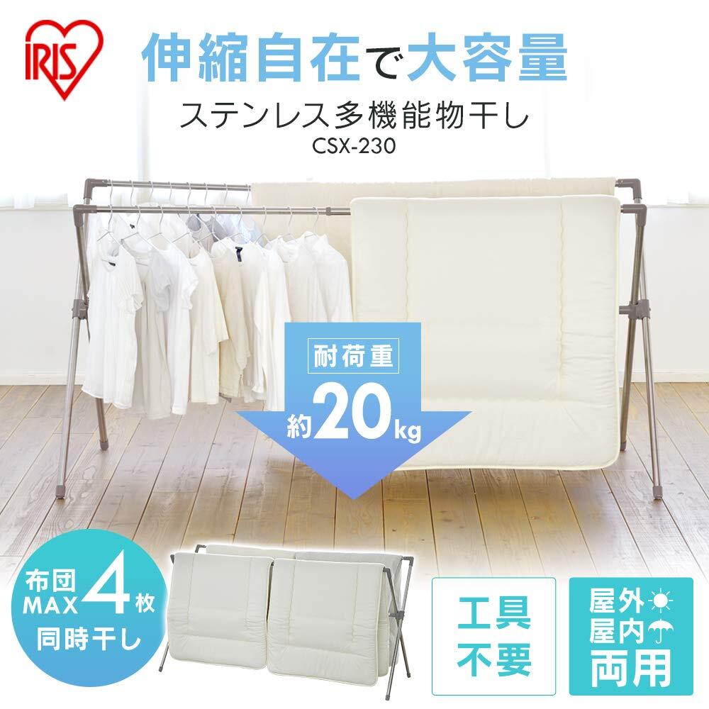 アイリスオーヤマ ふとん干し 伸縮多機能 折りたたみ 室内物干し 物干し 布団干し 幅130~225㎝ CSX-230 グレー