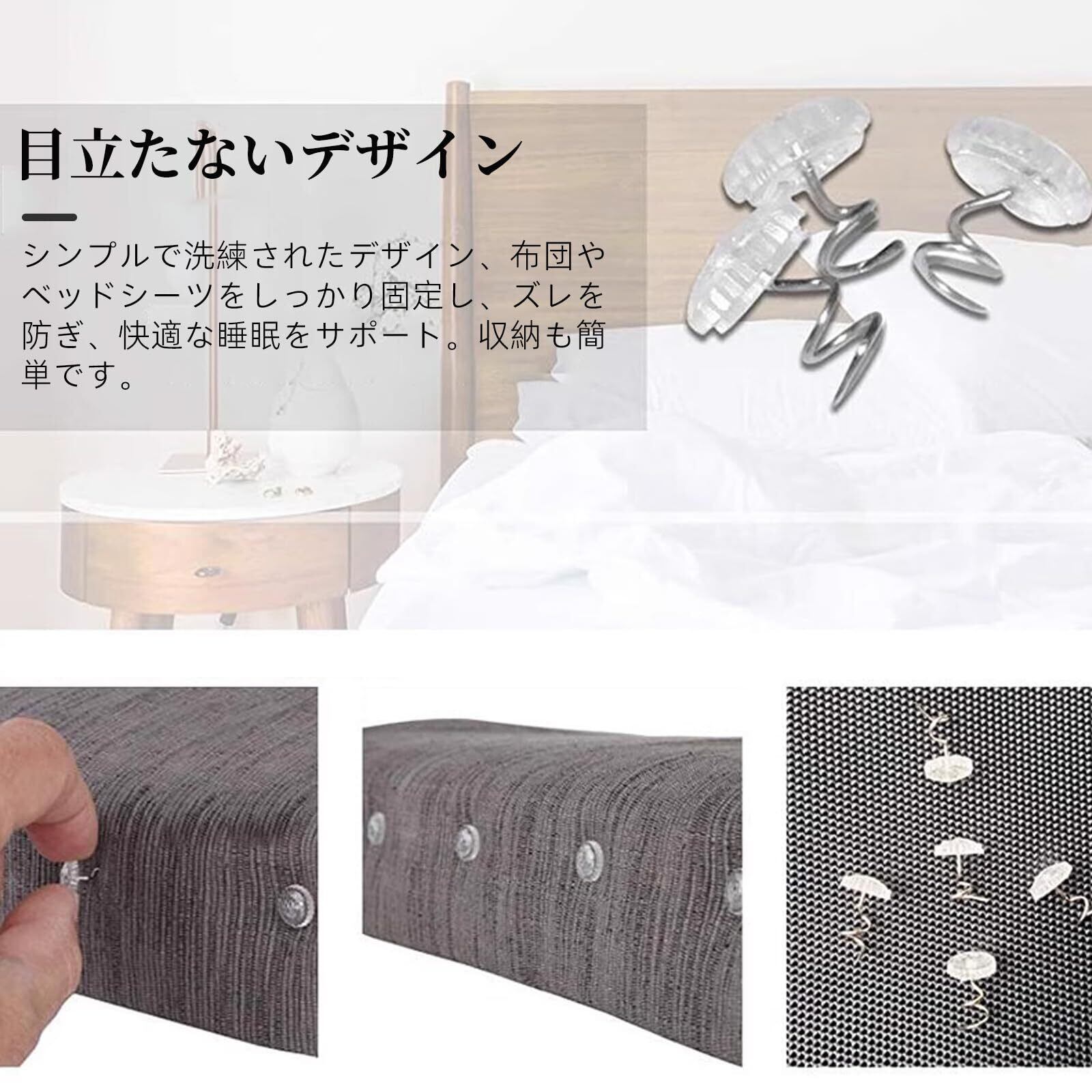 【目立たないデザイン】シンプルで洗練されたデザイン、布団やベッドシーツをしっかり固定し、ズレを防ぎ、快適な睡眠をサポート。収納も簡単です。