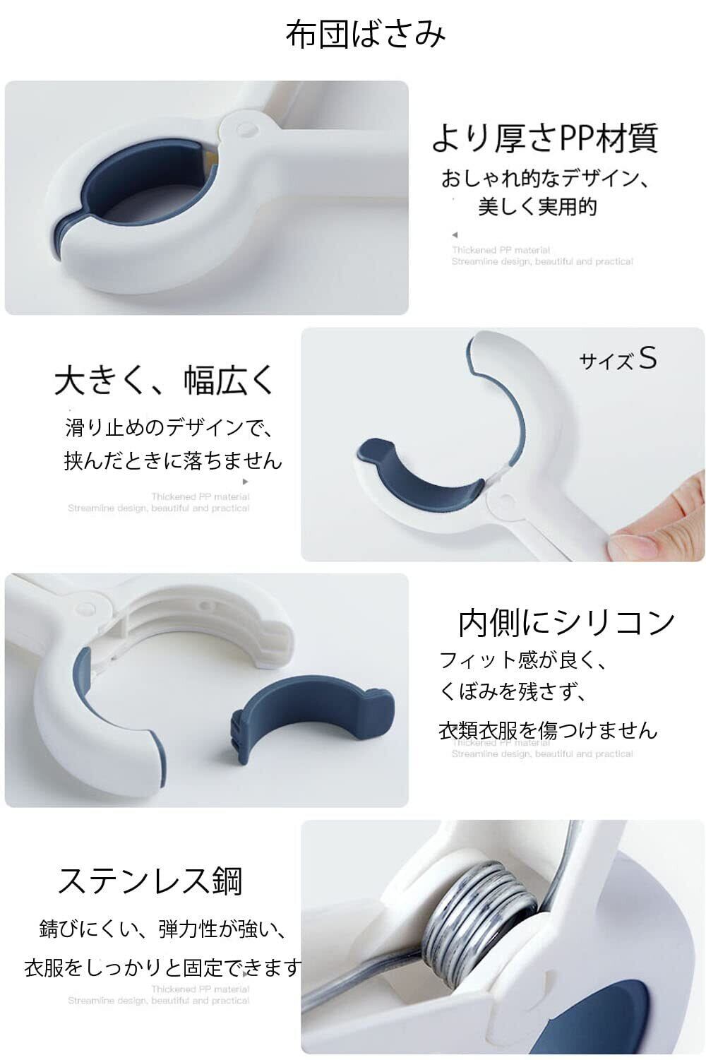 挟む力が強い外バネ式です。強力な鋼鉄バネで、羽毛布団から厚手のふとんまでしっかりはさみます。適用範囲:コード、毛布、Tシャツ、布団カバー、布団、ぬいぐるみ、枕など。