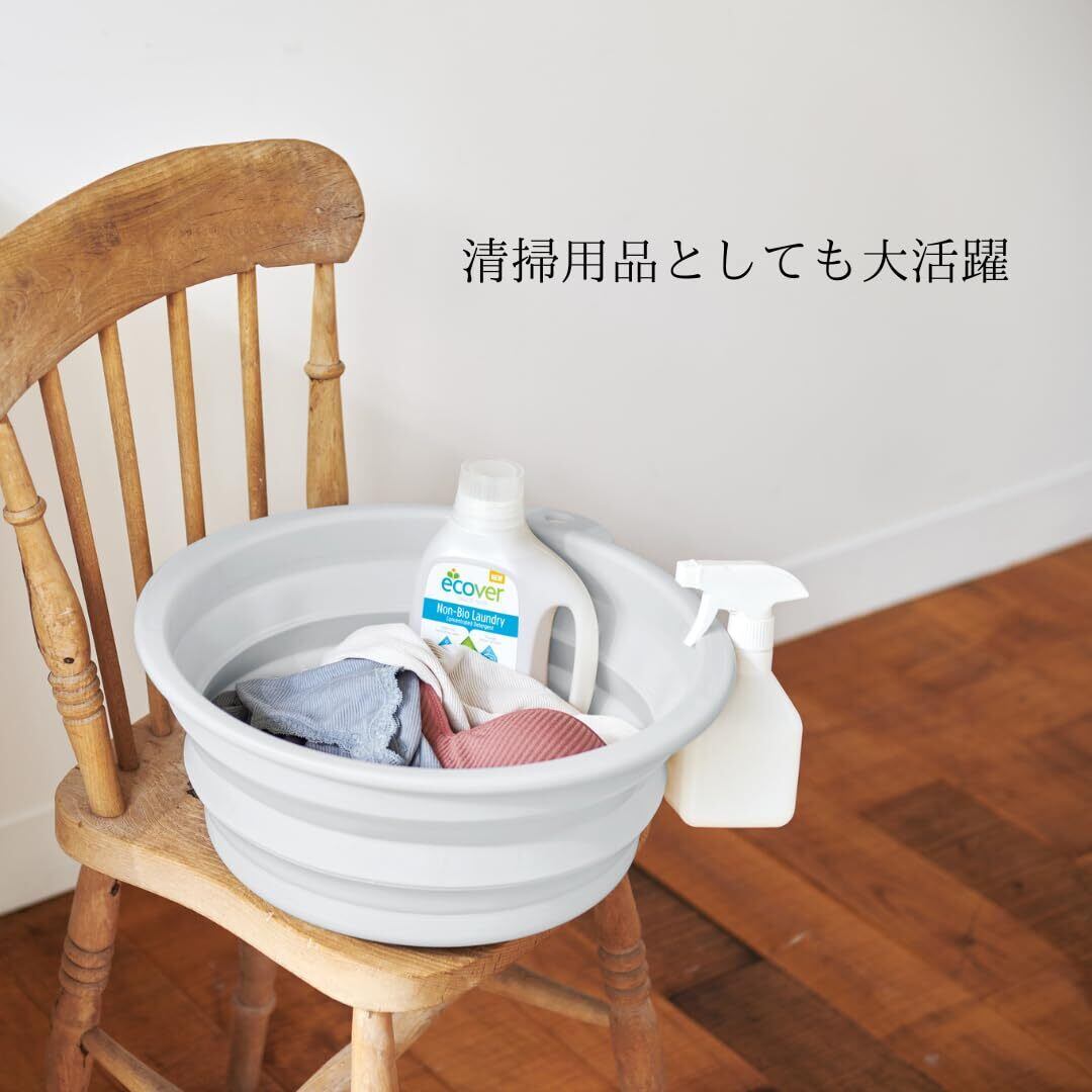 伊勢藤(ISETO) たらい ソフトタブ グレー 12L 幅40.5×奥行42.6×高さ4.5~16.5cm 日本製 折りたたみ 耐熱100℃ フック付 吊り下げ 足湯 つけ置き洗い 防災用品 コンパクト アウトドア キャンプ ペットバス 中型 I-615