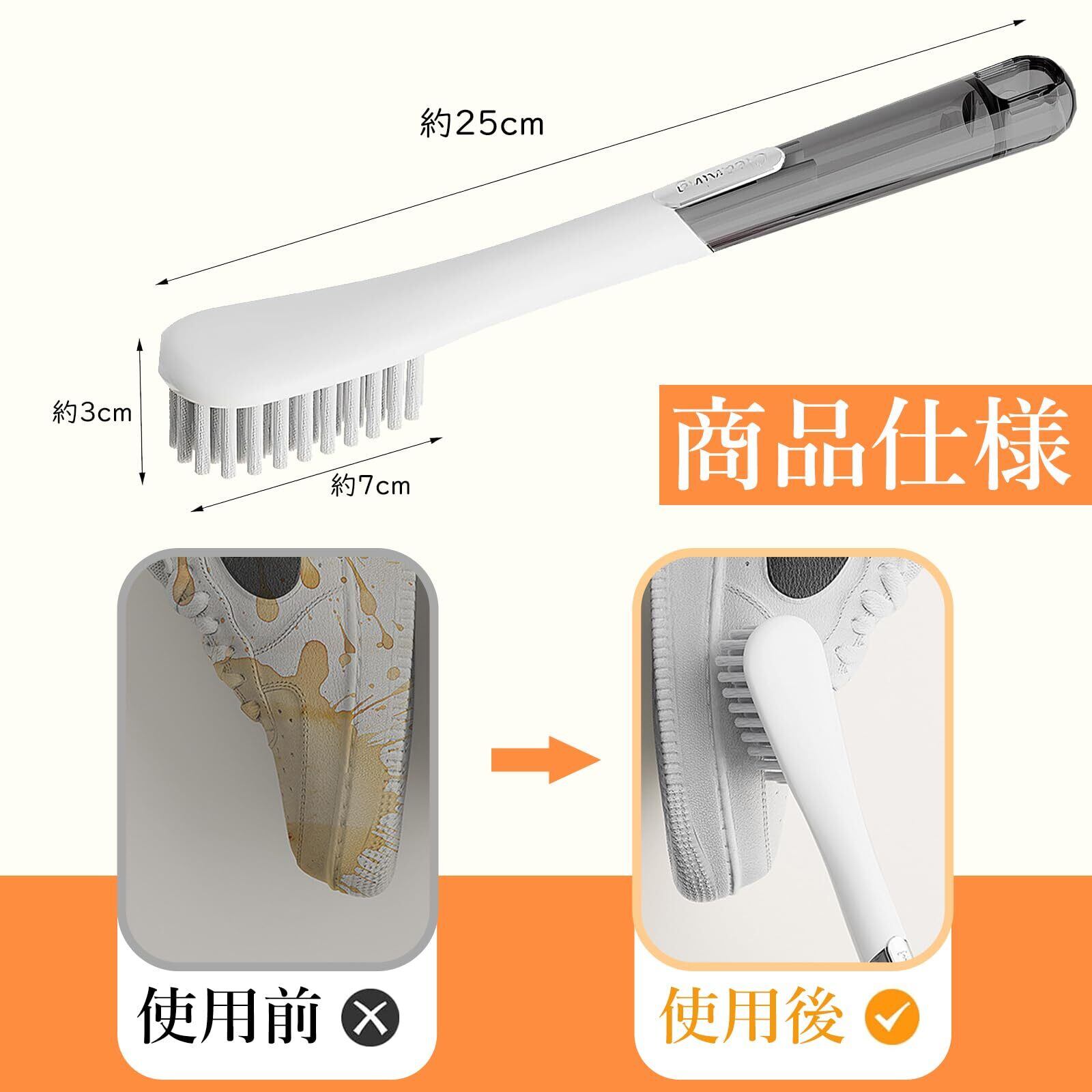 【快適なグリップ】靴洗いブラシは人間工学設計に合致し、長くて滑り止めの取っ手を備えており、握り心地が良く、力を加えやすく、靴の内部を深く掃除するのに役立ちます。ハンドルのデザインは、長時間使用時の手のを効果的に軽減し、同時に必要な力を減らし、体に圧力をかけないようにします。靴洗いブラシは掃除をより簡単で効率的にし、同時に快適な使用体験を保証します。