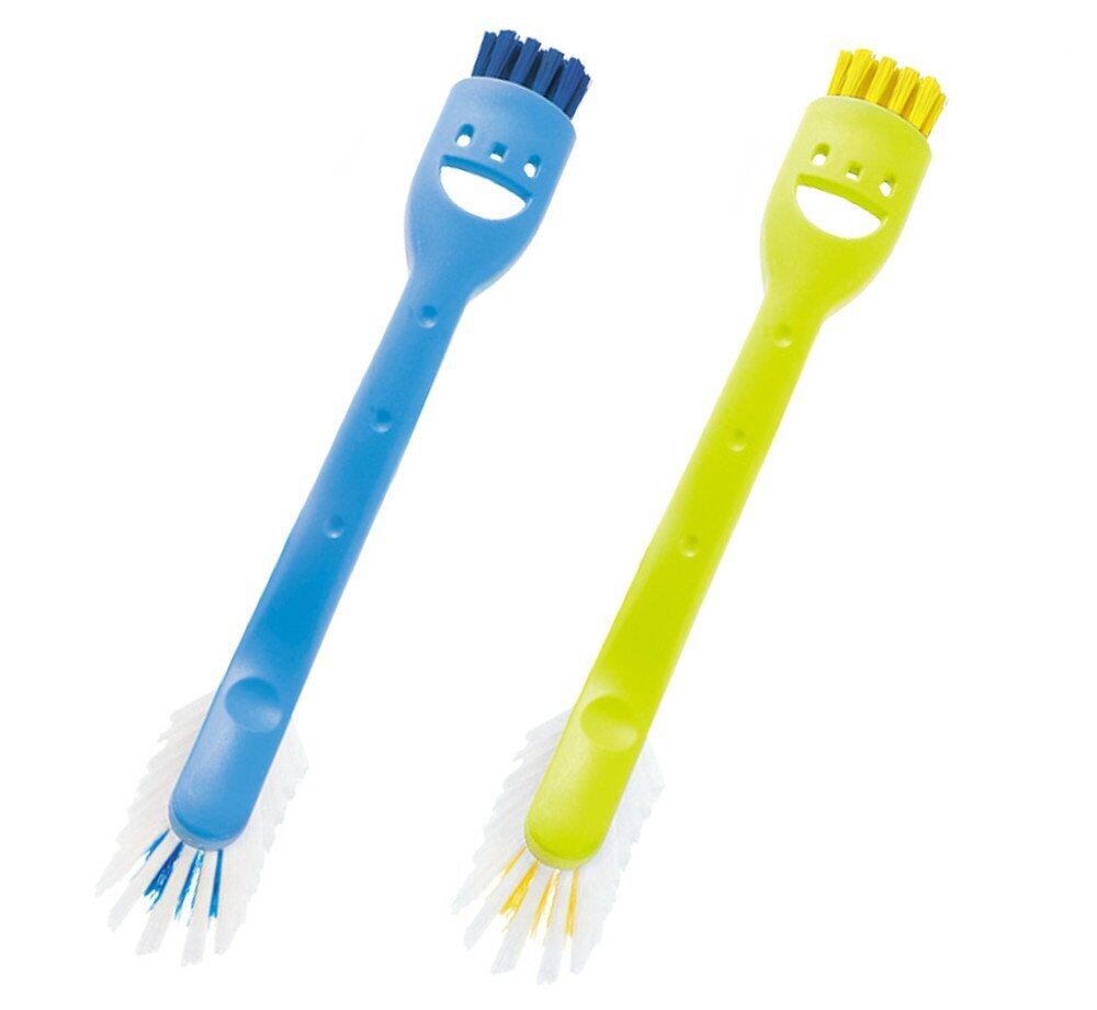 W植毛で泡持ち抜群のブラシと、細部をしっかり洗えるかき出しブラシでガンコな汚れもすっきりキレイに。