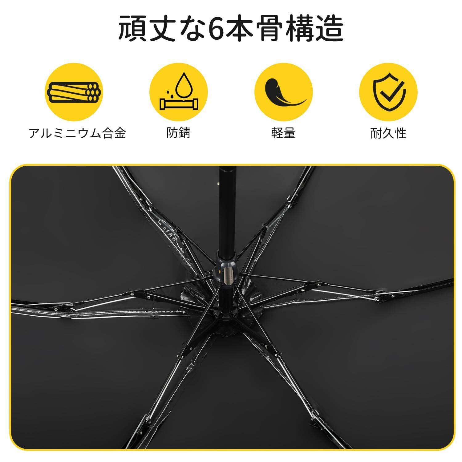 【頑丈な6本骨&耐風撥水】センターポールと6本の傘骨は頑丈なアルミニウム合金製で、超軽量の折畳み傘でありながら、耐久性も向上され、風に強くて折れにくい。梅雨対策や、荒れた天気にも難なく対応できる晴雨兼用の折りたたみ傘です。