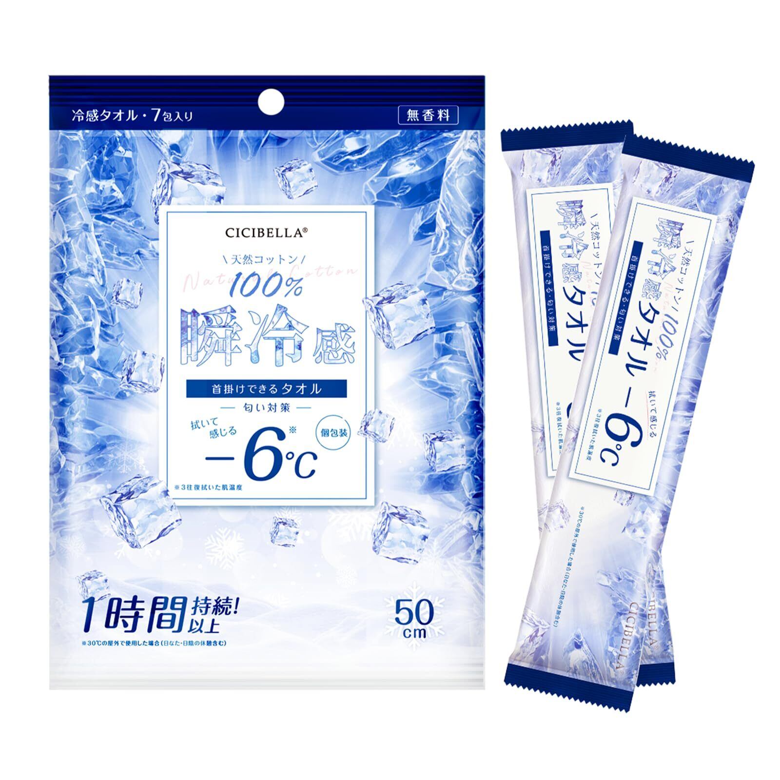 シシベラ 冷タオル 無香性 熱中対策にも使える 極冷えタオル 冷却 接触冷感 ひんやり 冷たい 暑さ対策 コットン 7枚入り*1パック ホワイト