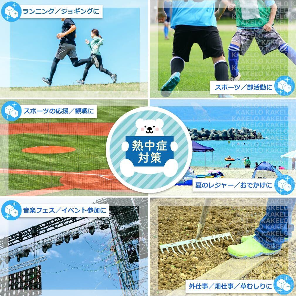ポンチョタイプは、一般的な冷感タオルの約3.5倍の大きさなので、長時間冷たさ持続! 炎天下が避けられない状況の仕事や作業、待機時間の長い部活、スポーツ観戦、フェスなど様々なシーンで活躍します。