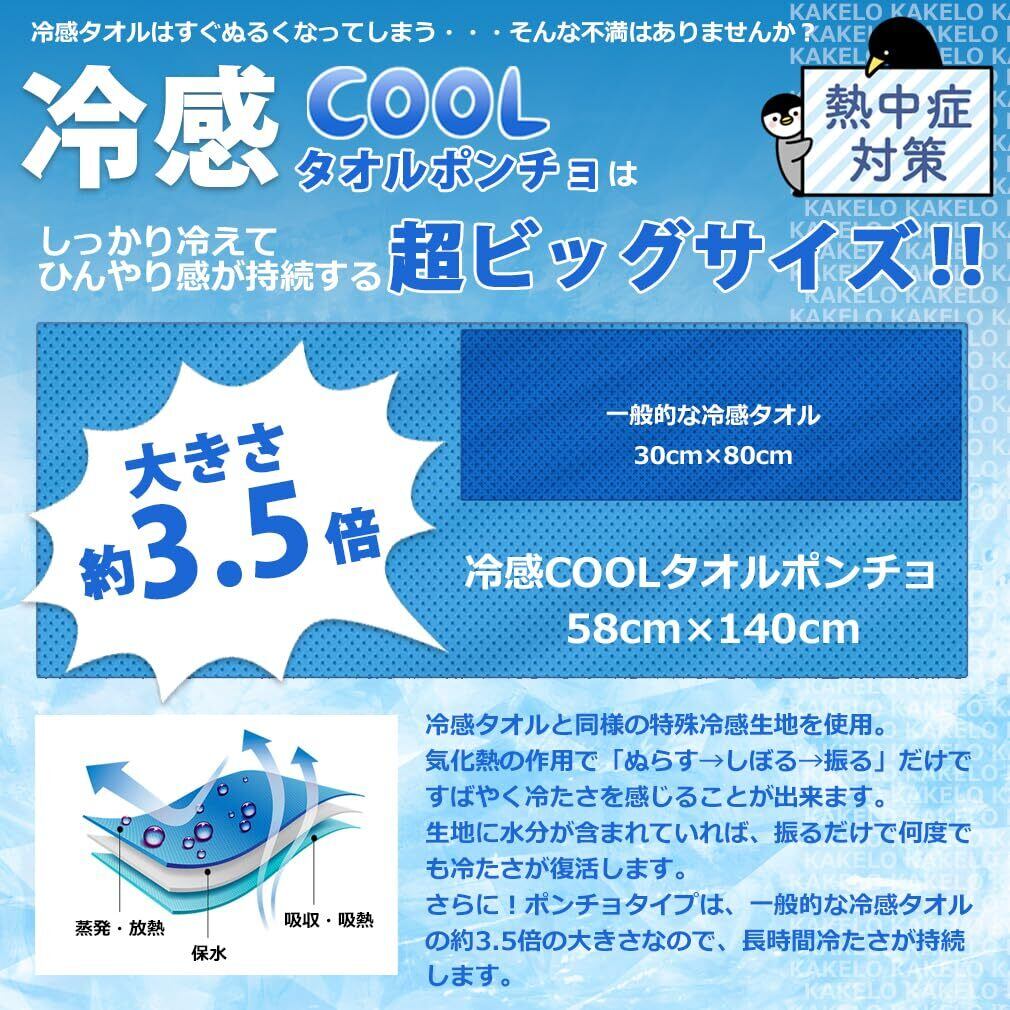 カケロ 冷感タオル 冷却 ポンチョ クールケープ クールタオル ひんやり 涼しい 熱中症対策 スポーツ 部活 (ライトグレー)