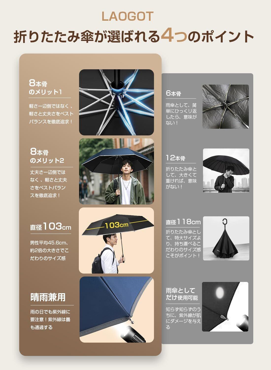【2022最新】ワンタッチ自動開閉 大きい おりたたみ傘 直径103cm 耐風 豪雨対応 反射テープ 折り畳み傘 男女兼用 日傘 UVカット 紫外線遮断 反射テープ 軽量 折畳傘 収納ポーチ付き