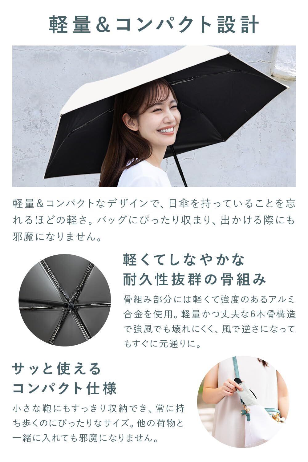 【超軽量コンパクト仕様】約200g!丈夫なのに軽くて小さいため、小柄なバッグにもサッと入り、重たく感じません。女性の肩や疲れを極限まで軽減した軽ラク設計。