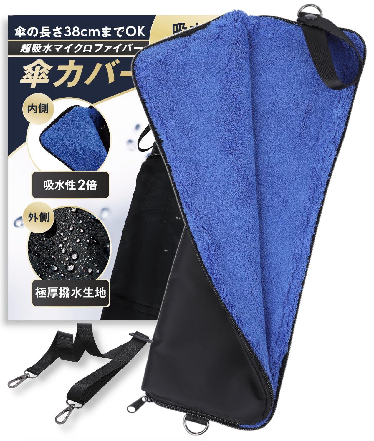 傘カバー肩紐付き マイクロファイバー 傘袋 折りたたみ傘 ケース 吸水 傘ケース 傘袋 折り畳み傘