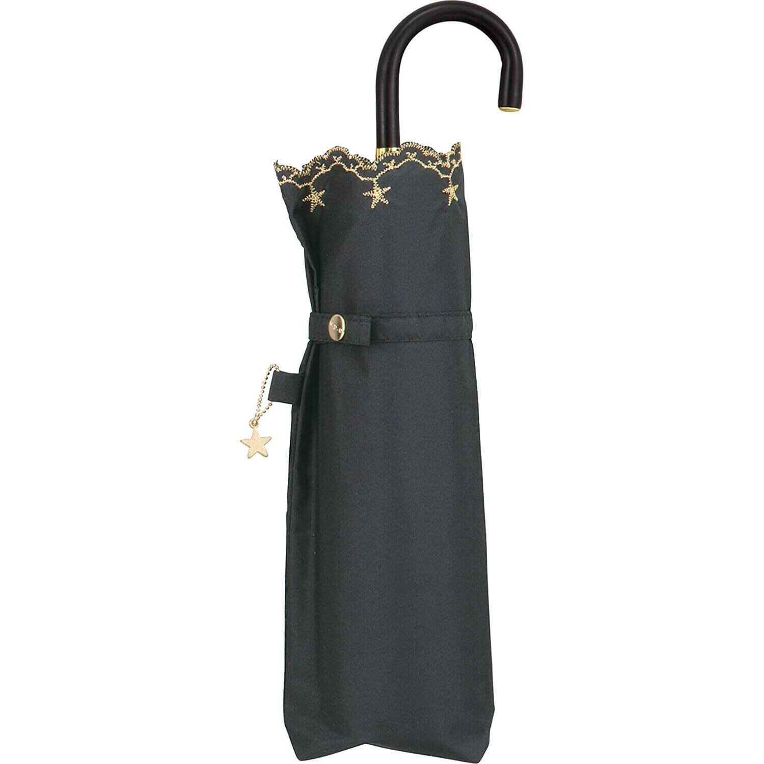 Wpc. 日傘 遮光星柄スカラップ ミニ ブラック ≪遮光率100%/UVカット率100%/・UPF50+/遮熱/晴雨兼用≫ 折りたたみ傘 通勤 通学 旅行 オシャレ 可愛い 女性 レディース 801-17994-102