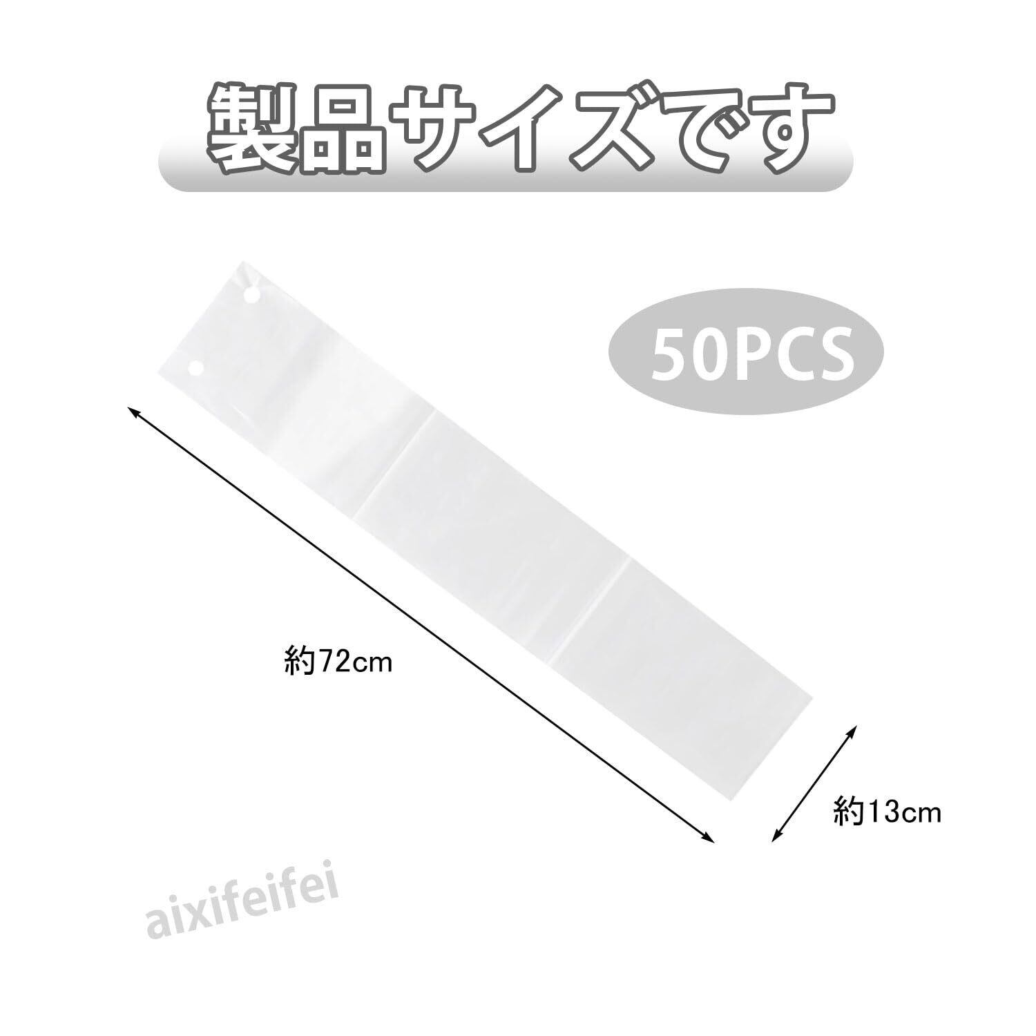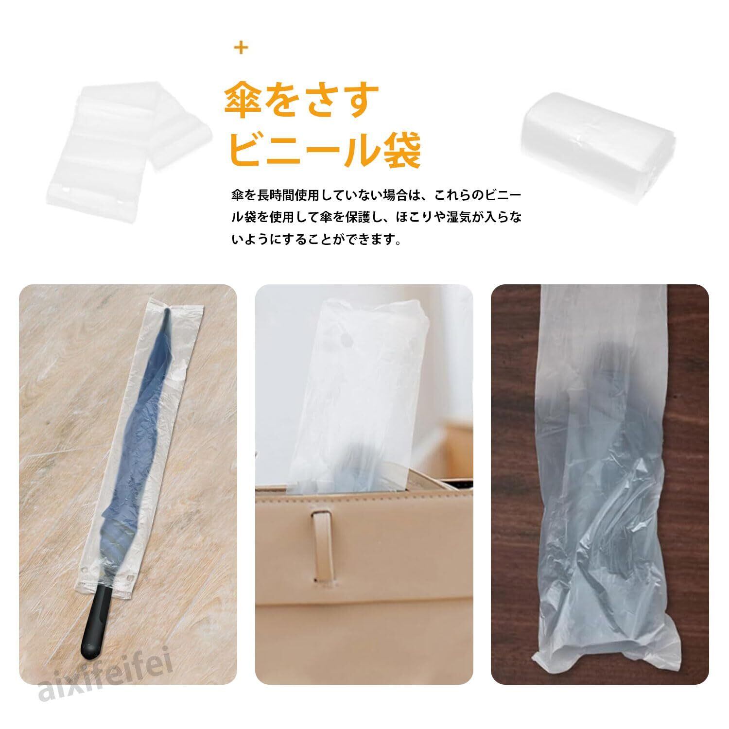 製品仕様:傘袋50枚入り、サイズは70×13cm。傘は雨の日に衣服を濡らしやすい。使い捨て傘袋は簡単に傘を傘袋に入れる事が出来るので、雨の日に店頭でのお客様の入店をスムーズに促します、傘が衣服を濡らすのを防ぐ。