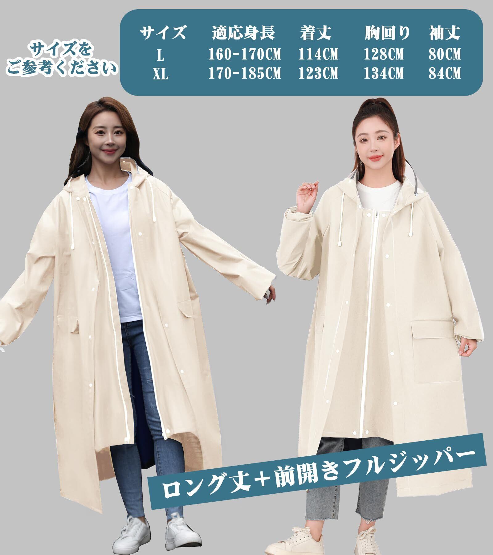 【高品質EVA素材&性能高いレインコート】環境と耐久性に優れたエコ素材のEVAを採用し、手触りはすべすべで触り心地がよく、表面には3重撥水加工を施し、耐水圧2500mm、縫う面は防水加工をしっかりしており、レインコートとしての性能バッチリ!緊急雨具はファスナーとボタンの二重シールを採用しています。厚手ながら丈夫で、防水性、防風性、通気性、実用性、適用性を全面的にアップしました。適度な厚みや重量を持たせることで、風の強い日や豪雨の時に、レインウェアが体にまとわりついたり、捲りあがるのを防ぎます。雨の日の自転車で、機能もおしゃれも妥協したくない人のための、高い機能性とデザイン性を両立させたレインコートです。
