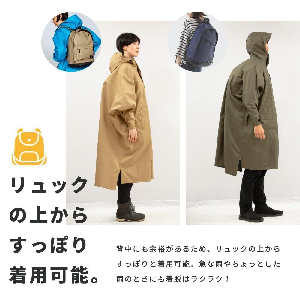 [ピラルク] レインポンチョ サイクルモード ハイポンチョ 撥水 防水 ベージュ Free