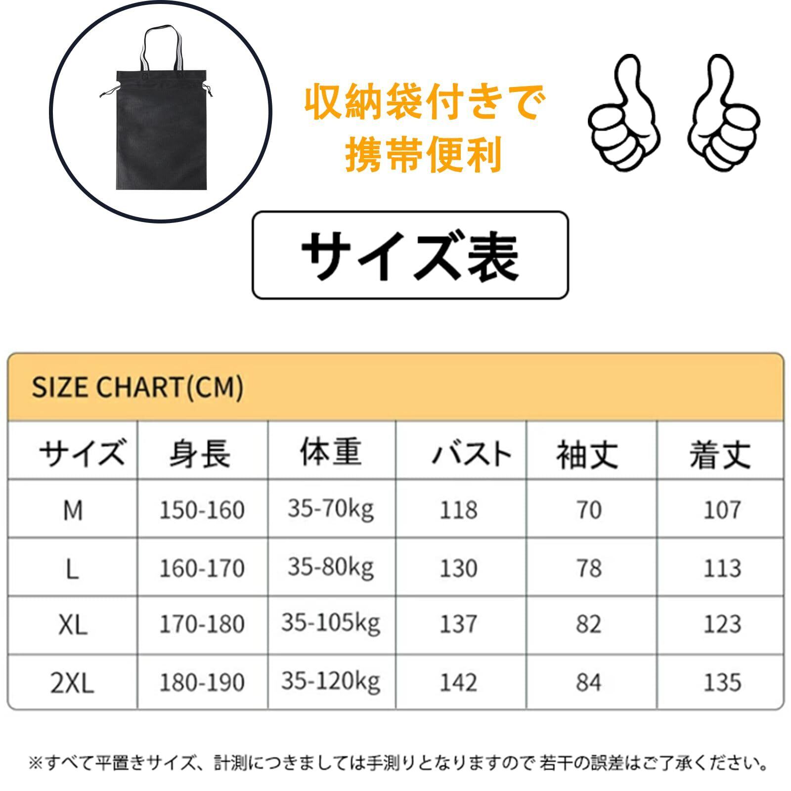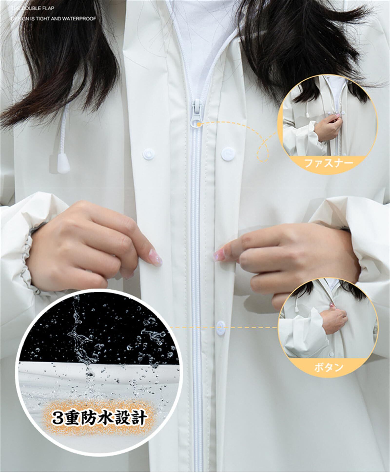 【優れた防水設計】この商品は環境に優しい耐久性の高いEVA素材を採用し、3重防水設計で雨が生地に染みこまない特徴を持っています。さらに、ファスナーとボタンの二重設計により、雨風を完全に防ぐだけでなく、服の内部への雨水侵入を防ぎます。それにより、大雨の中でも安心してご利用いただけます。