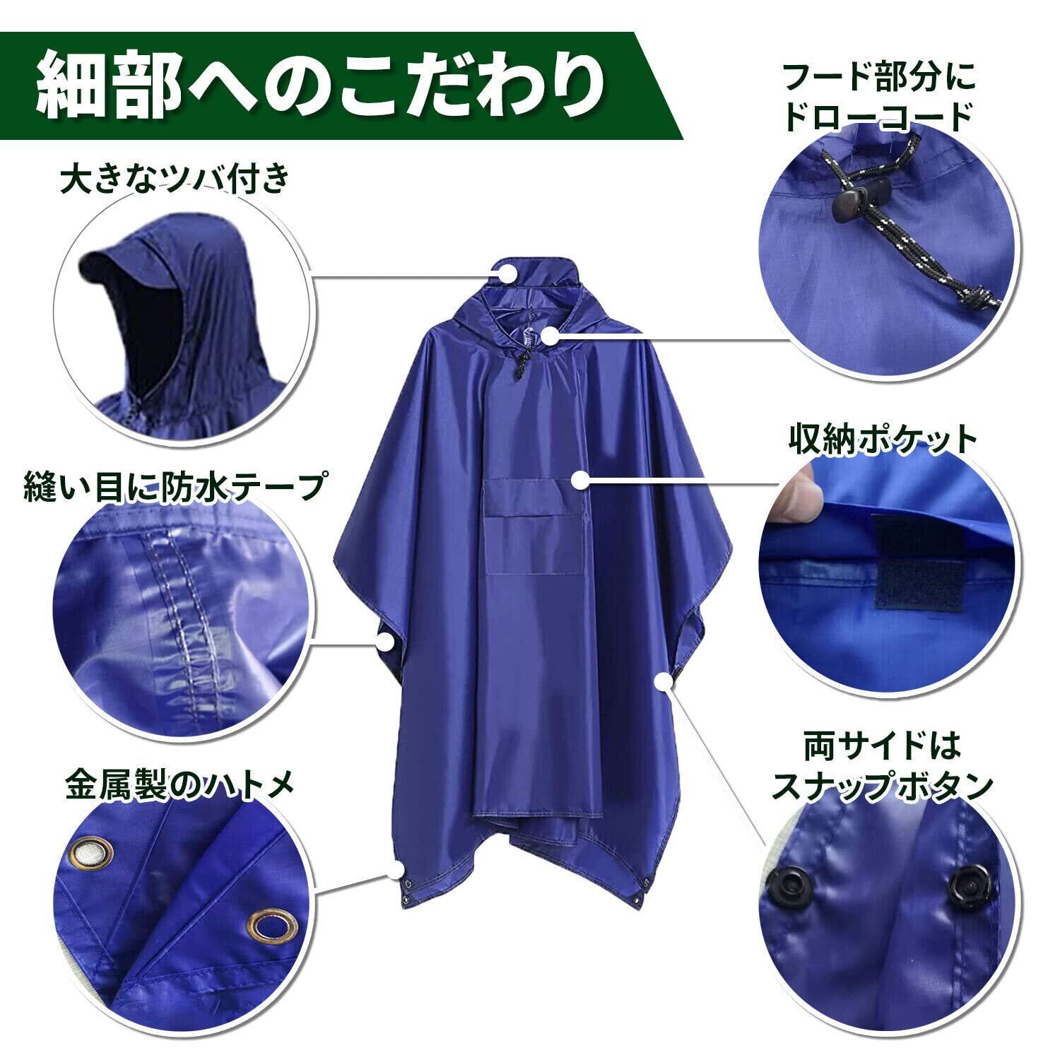レインポンチョ レインコート ポンチョ メンズ レディース 自転車 アウトドア 軽量 コンパクト かっぱ 3WAY 原付 雨具 ポケット付き マット テント キャノピー 防風 防水 無地 収納袋付き