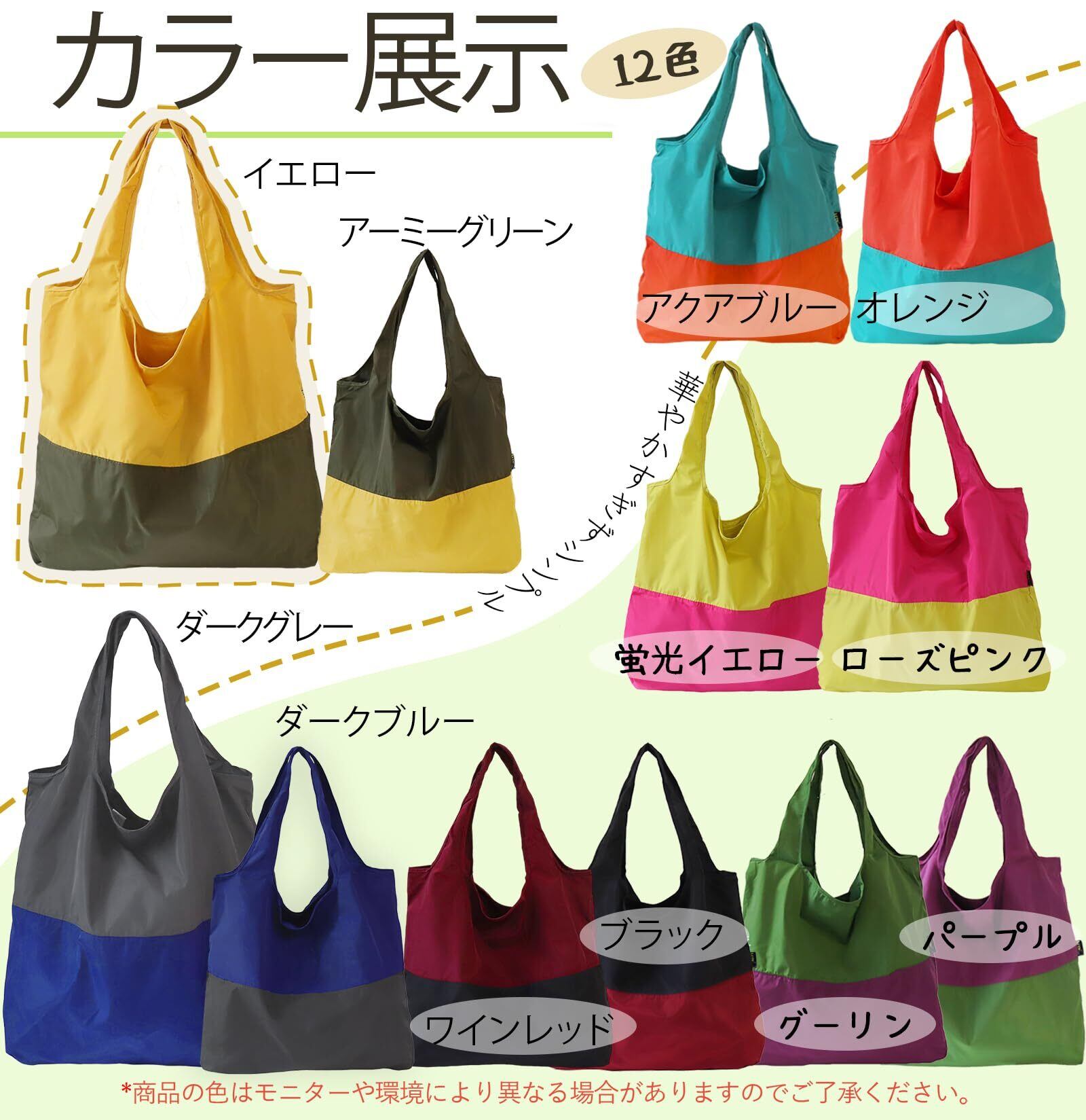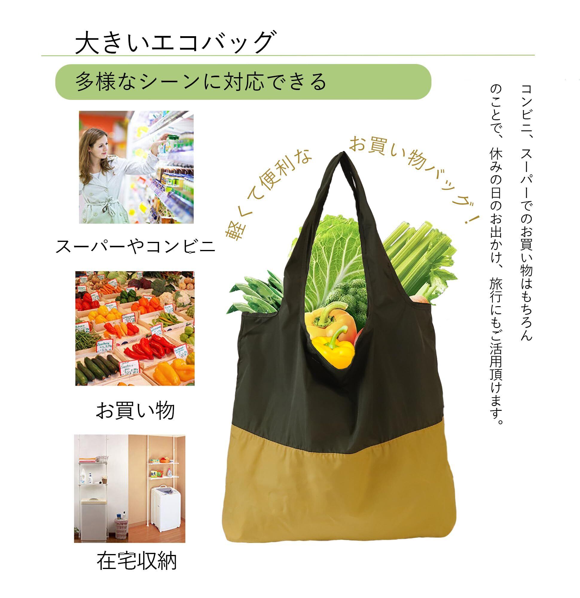 【利用場面】コンビニやスーパーでのショッピング、休日のお出かけや旅行にもぴったり。華やかすぎずシンプルだから、どんなファッションにも合わせやすいよ。軽くて持ち運びもラクラク、環境保護のお買い物バッグとして大活躍!