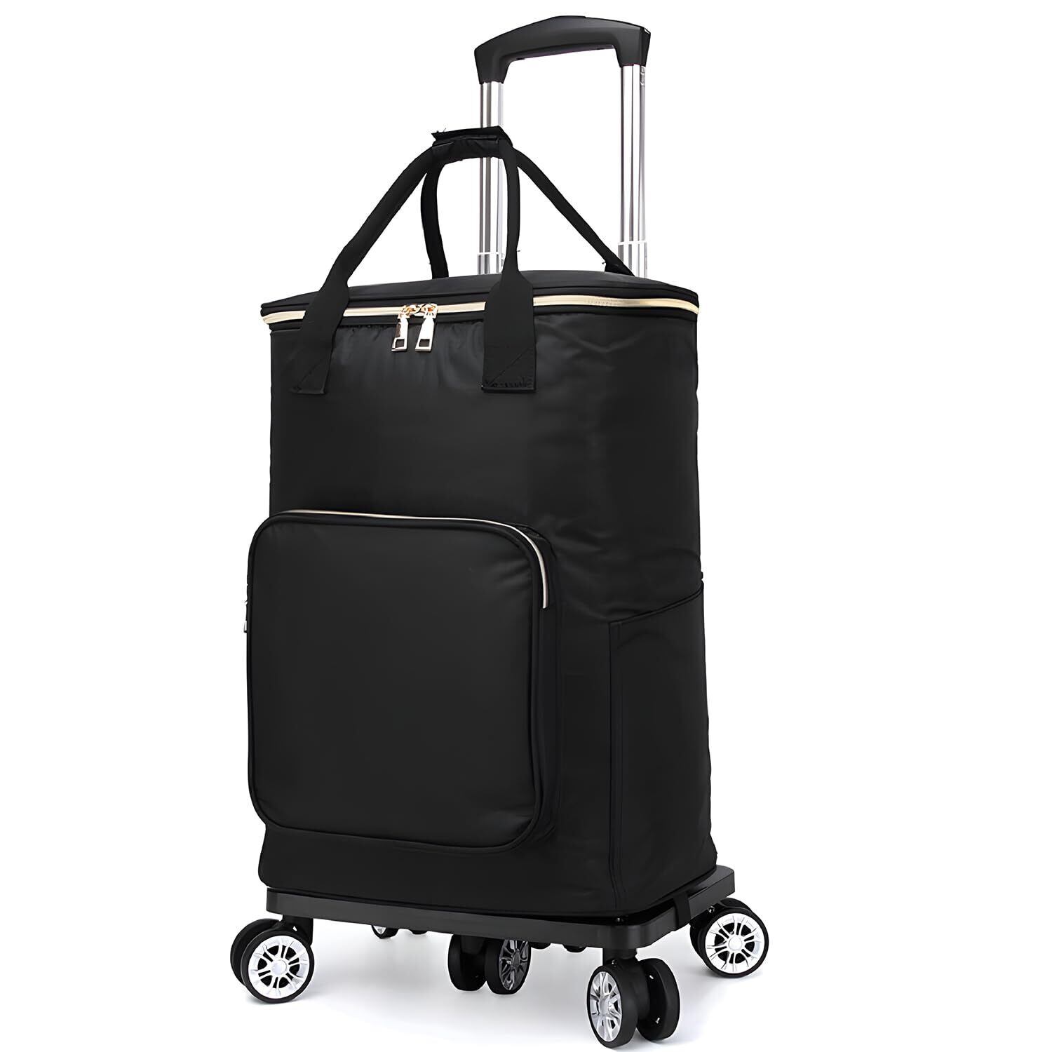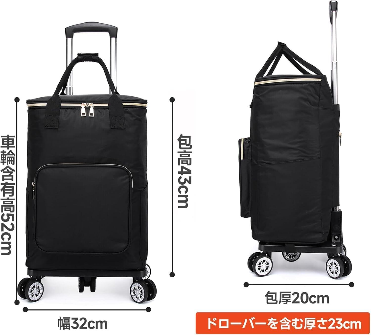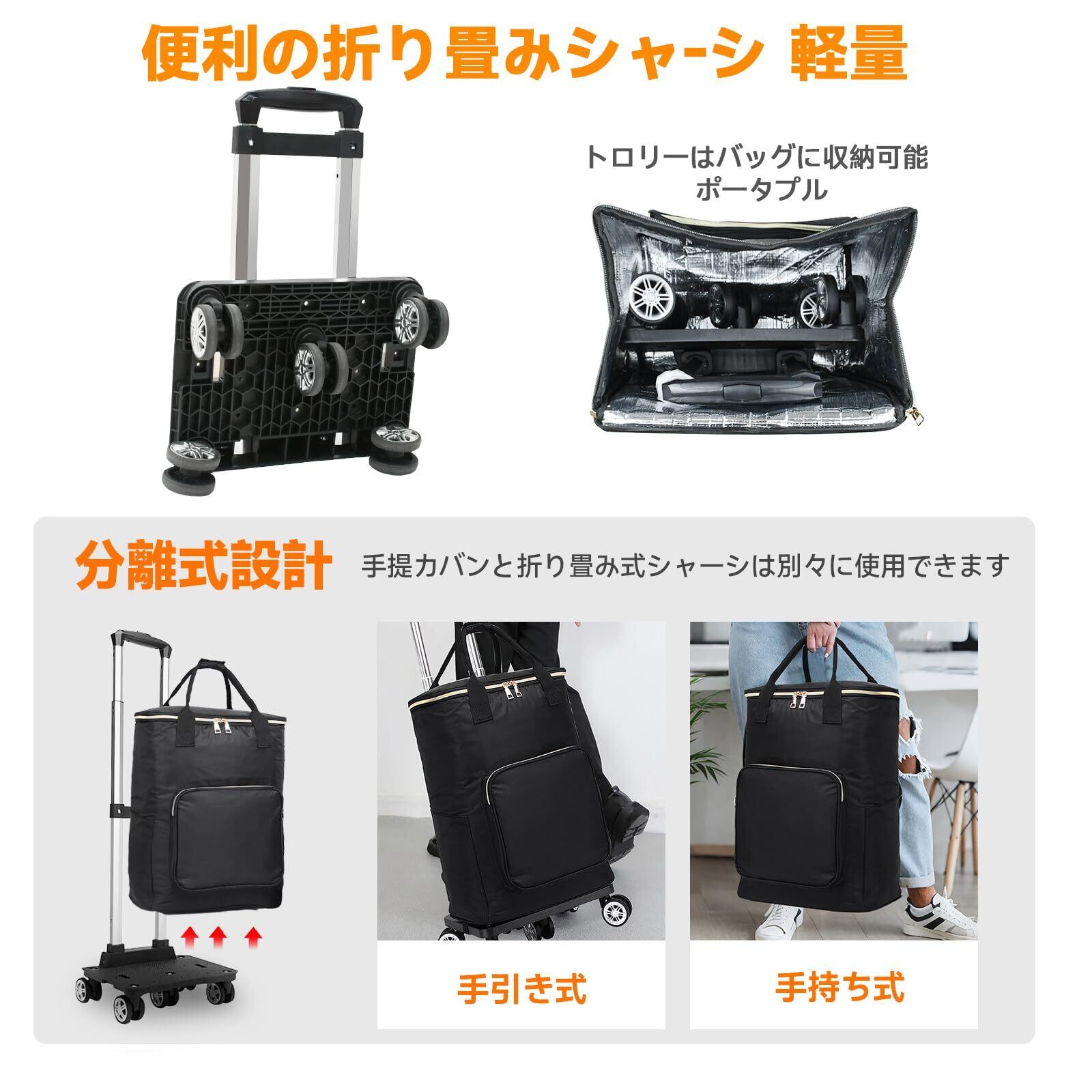【新着商品】ショッピングカート 保冷機能付き 買い物カート 保冷バック 5輪 お買い物キャリー キャスター付き 買い物カート 買い物かご 取り外し可能 2WAY 大容量 27L 軽量 ハンドル長さ調節4段階 (ブラック, 27L)