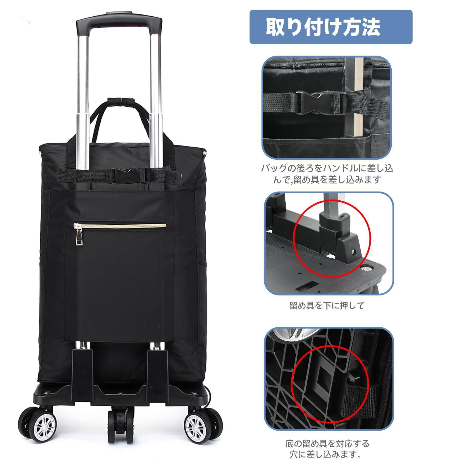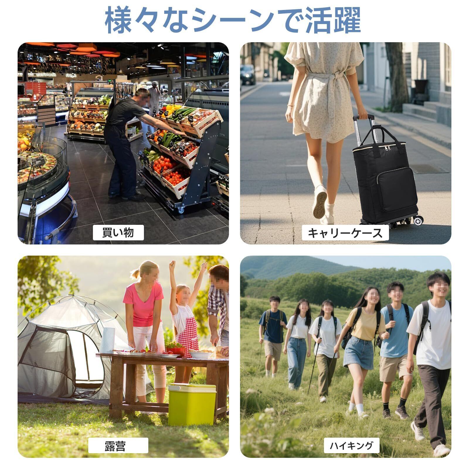 ショッピングカート 買い物カート 5輪 保冷機能付き トートバッグ型 お買い物キャリー キャスター付き 保冷バック 保温 買い物 折り畳み式 軽量 取り外し可能 2WAY 軽量 ハンドル長さ調節3段階 (ブラック, 50L)
