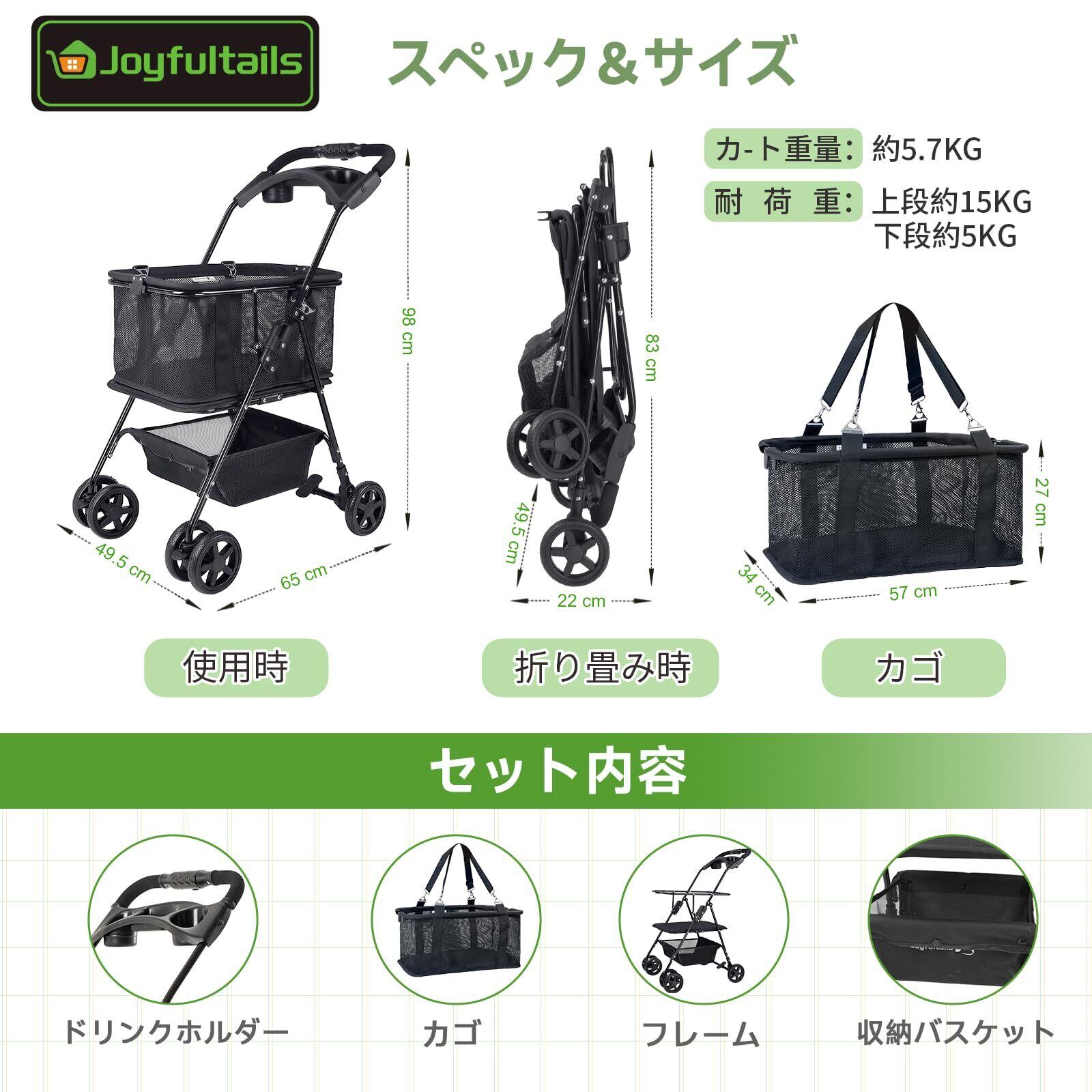 ショッピングカート ワンタッチ 折りたたみ 買い物カート 2段 コンパクト収納 静音 軽量 キャリー カゴ 取り外し 4輪 ブレーキ付き スーパー 買い物かご エコバッグ 大容量(ブラック・メッシュ)