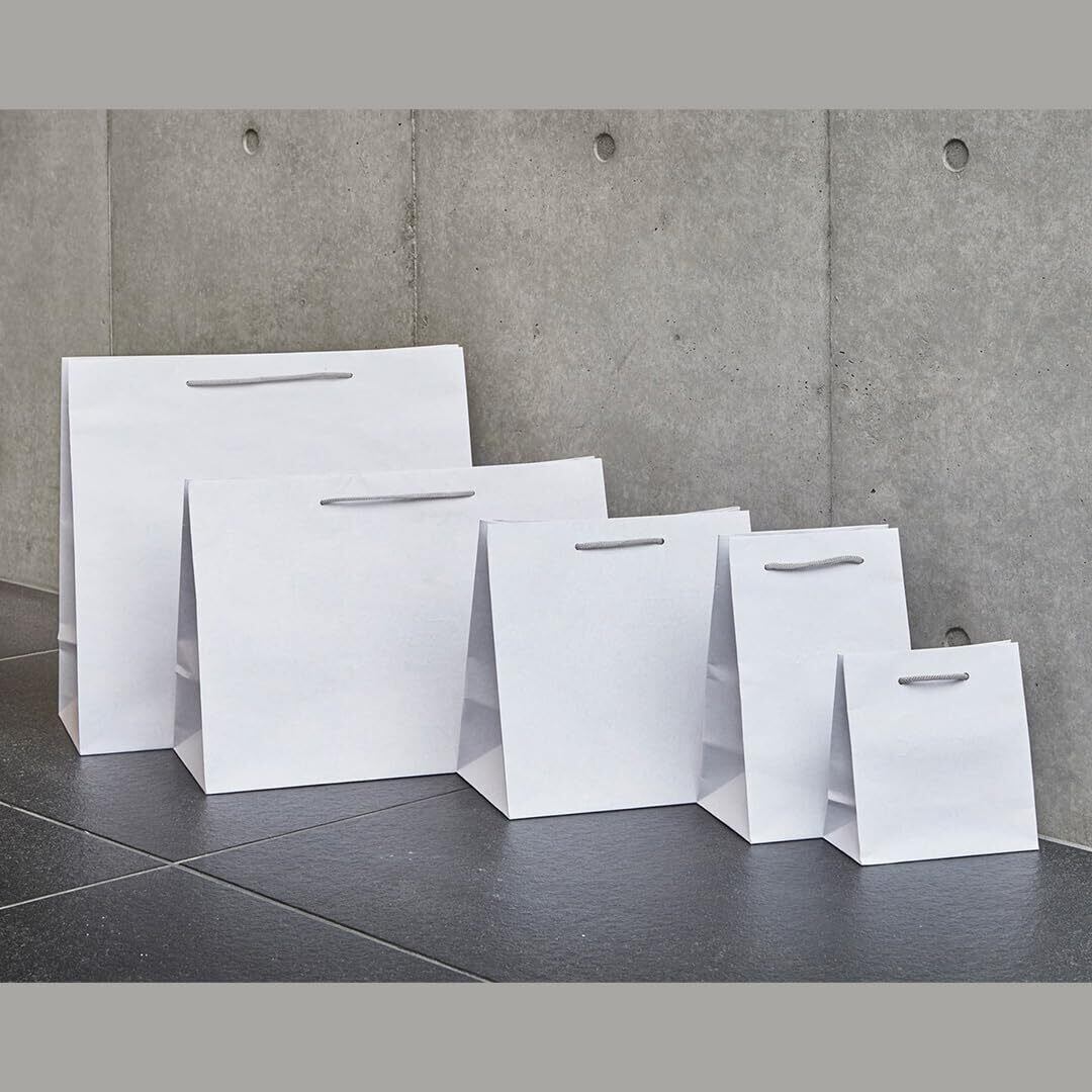 環境に考慮した、持ち手まで全て紙製の手提袋です。 袋本体は60~80%の再生紙を使用し、紐は紙製の網紐を使用しています。 細かい点などが見られる場合がありますが、再生紙の特性のため品質には問題ございません。