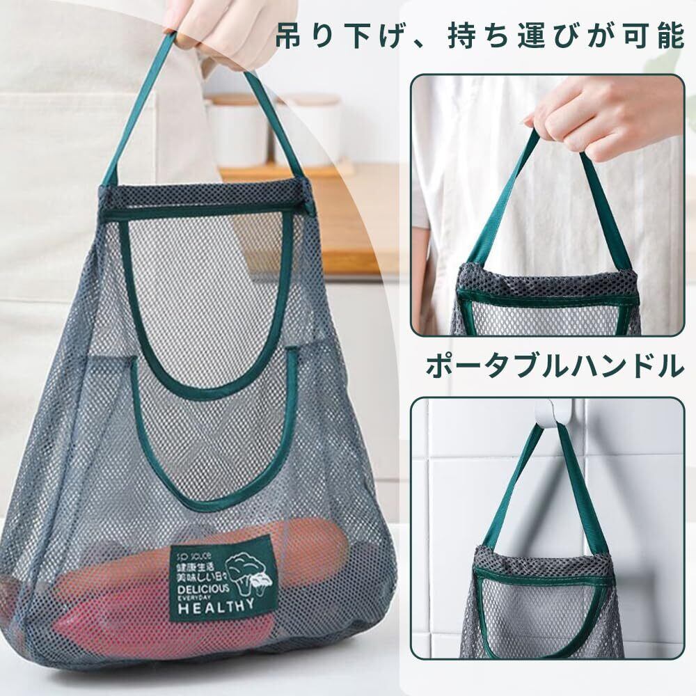 野菜 吊り下げ 3枚セット 買い物バッグ ポリ袋収納 ネットバッグ 網袋 野菜果物ストッカ