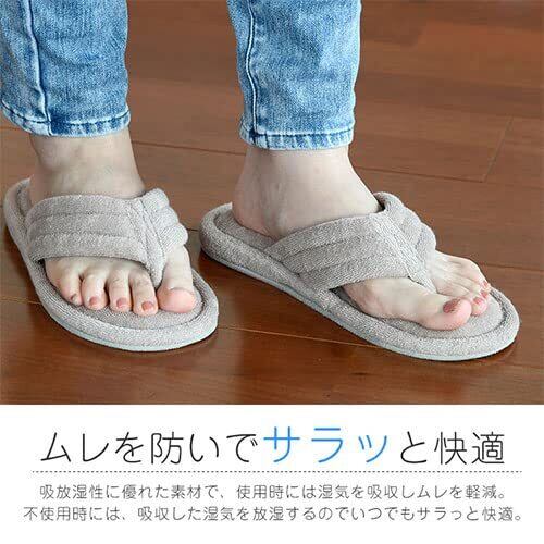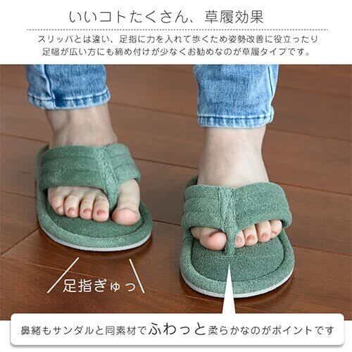 【サラっとムレにくい】この繊維は吸放湿性がとても高くいつも快適な湿度環境を保持することに優れ、夏でもサラッと蒸れにくく快適にお過ごしいただけます。驚くほどの柔らかさが特徴で多くのアパレルメーカーにも採用されています。足幅が広い人にもお勧めの草履タイプで、鼻緒部分はサンダルと同素材でふわっとやわらかく長時間のご使用でも指が痛くなりにくい設計です。