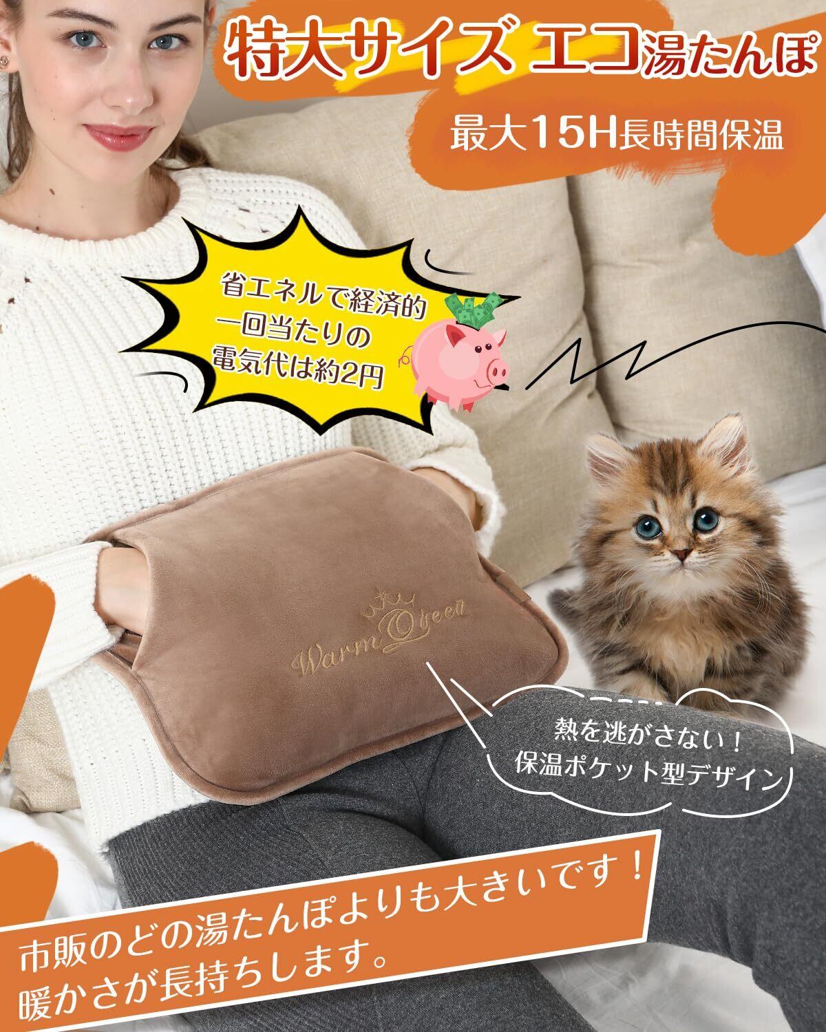 湯たんぽ ゆたんぽ 充電式エコ湯タンポ 5~15H長時間保温 充電器 電気湯たんぽ 過熱防止機能 柔らかく温かいなカバー付き 洗濯OK 暖房器具 省エネ お腹周り/背中/指先/足元 あったかグッズ 防寒グッズ 冷え対策 安全PSE認証 ギフト用として人気 祝い クリスマス プレゼント (ブラウン Lサイズ)
