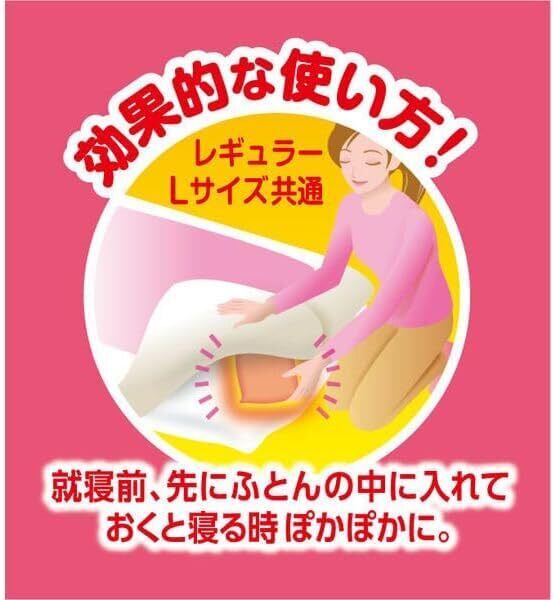 Lサイズはたっぷりサイズで、お腹・腰・足元・布団の中など広い範囲に対応します。