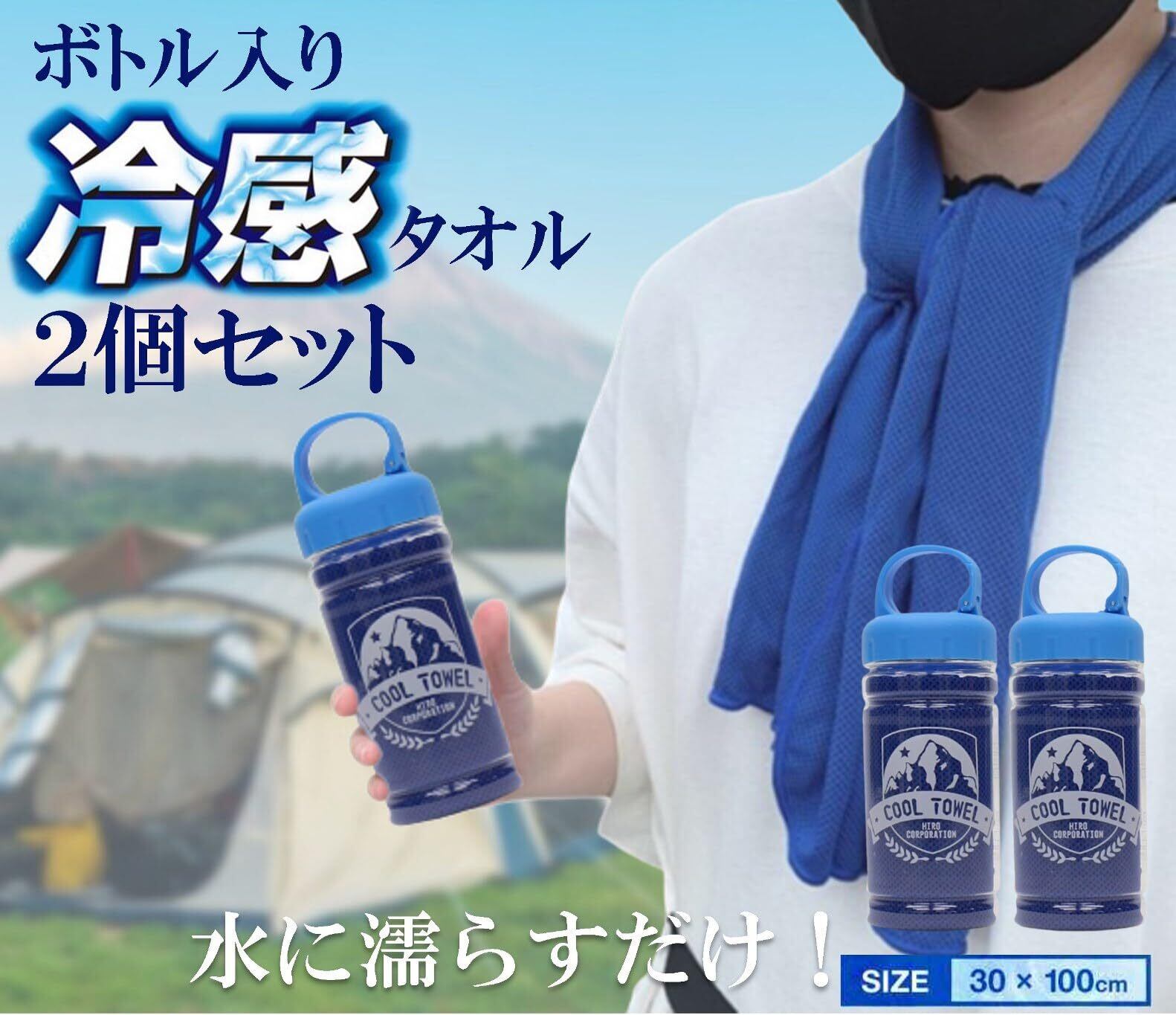 【新着商品】ボトル入りクールタオル 2個セット ブルー 冷感 タオル 速乾 熱中症対策 スポーツ アウトドア