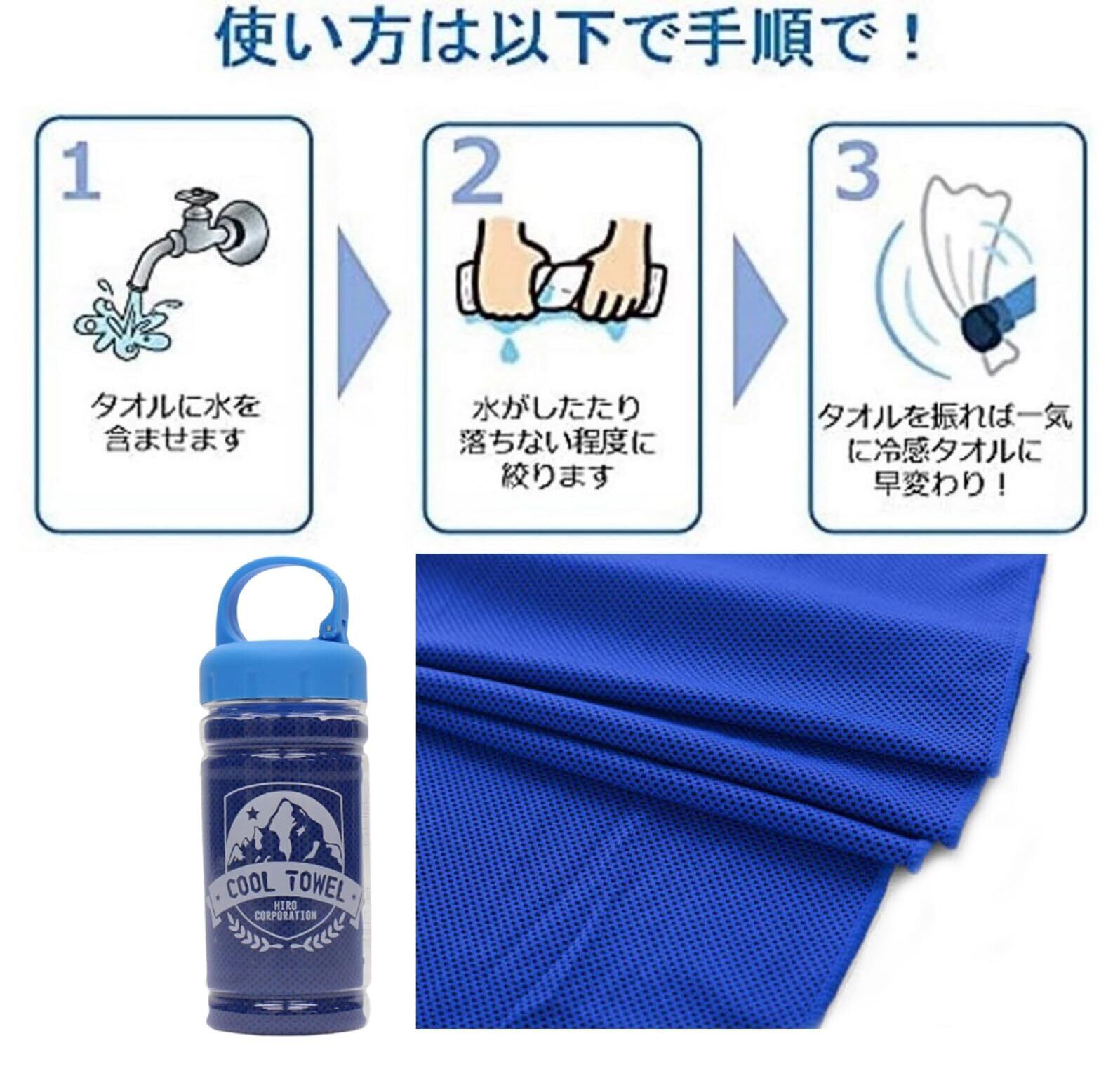 ボトル入りクールタオル 2個セット ブルー 冷感 タオル 速乾 熱中症対策 スポーツ アウトドア