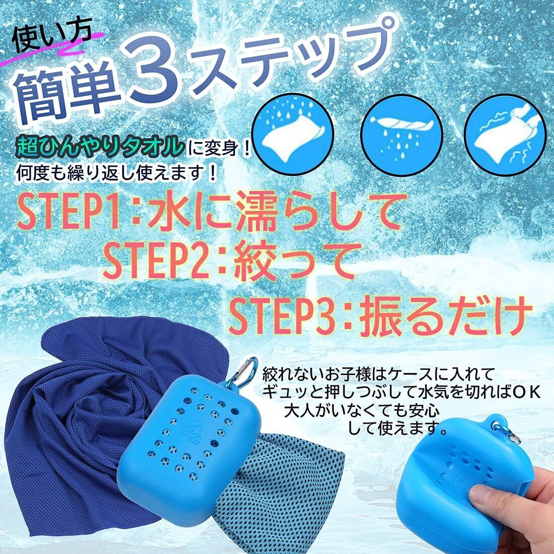【夏の必需品!軽量ケース付き◎超冷感クールタオル 2セット◎】水に濡らしタオルをふりふりするだけで冷た~いひんやりタオルに変身。使用後の濡れたタオルを付属のケースにギュギュっと詰め込むだけでOK◎小さなお子様も簡単収納◎